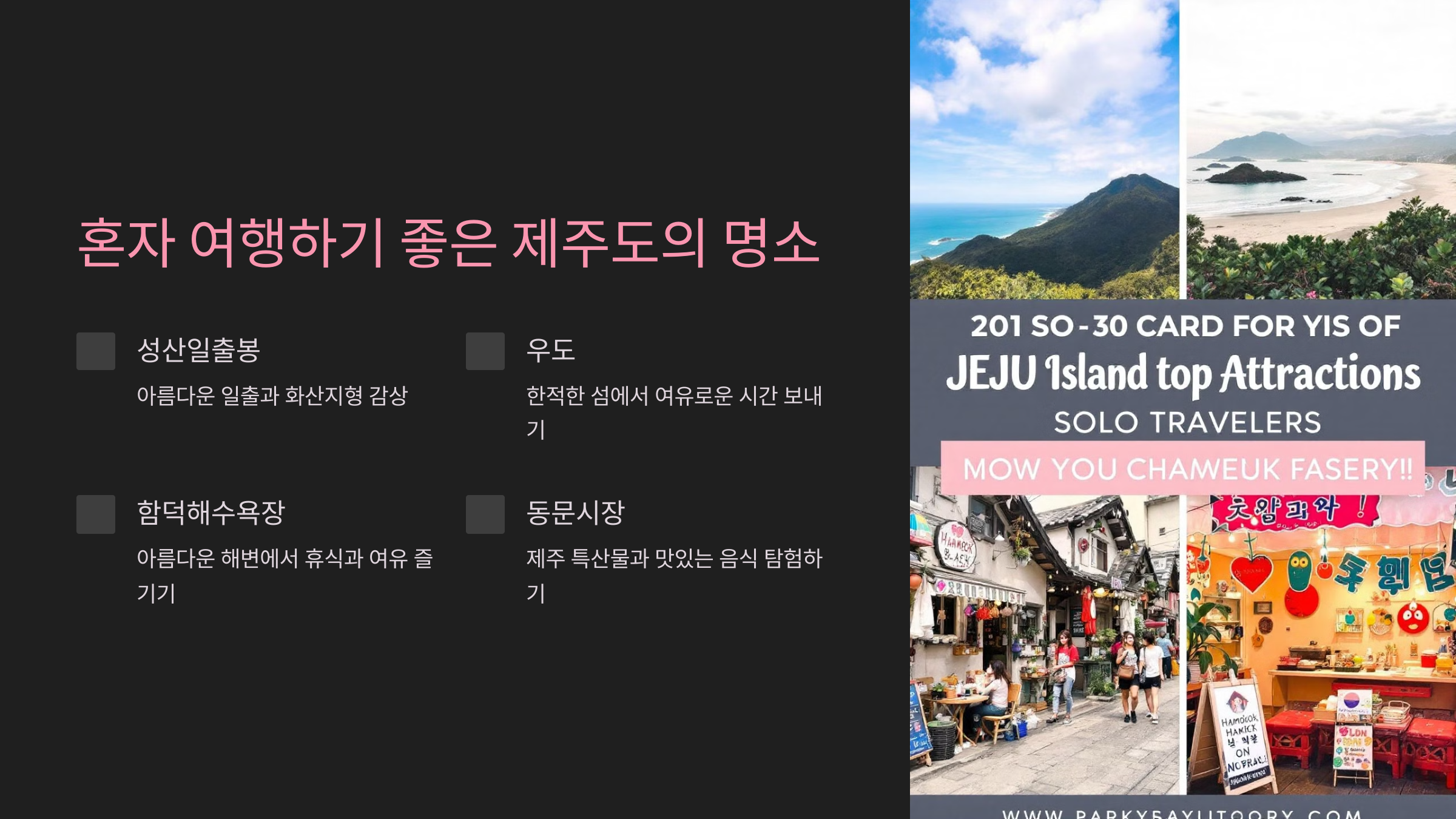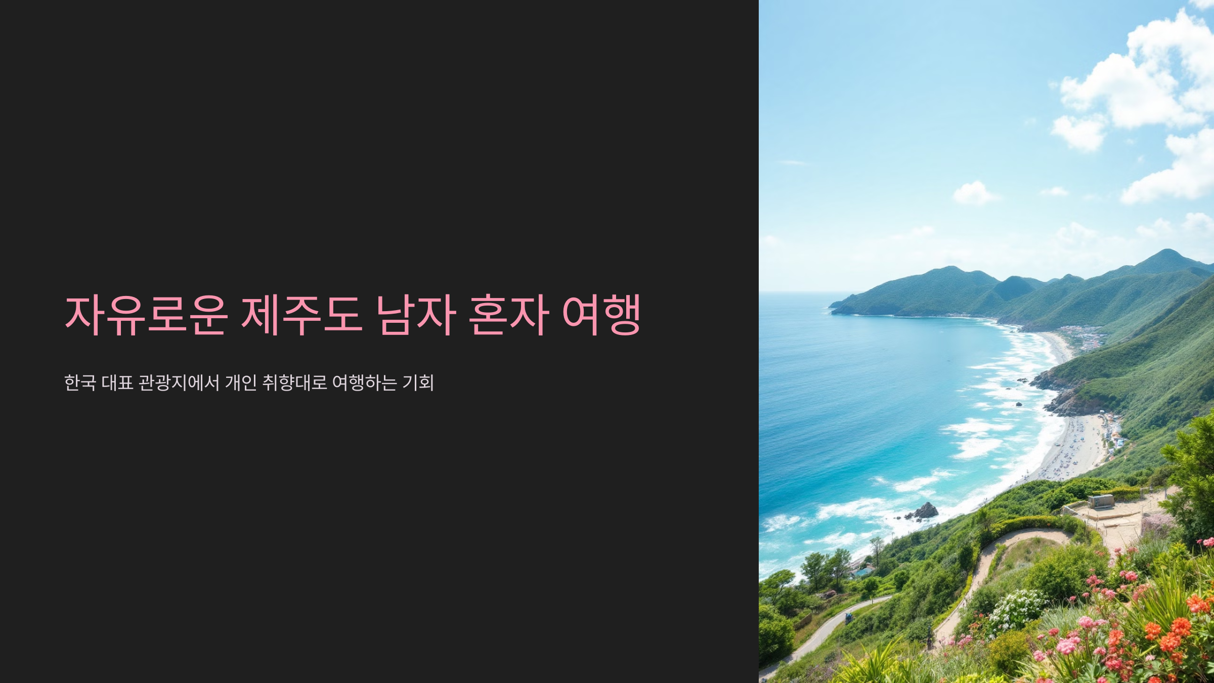 제주도는 한국을 대표하는 관광 명소로, 그림 같은 자연과 독특한 매력을 품고 있는 곳입니다. 특히 남성 혼자 떠나는 여행은 개인의 속도와 취향에 따라 자유롭게 일정을 계획할 수 있는 특별한 기회를 제공합니다. 제주도의 안전한 환경과 다채로운 액티비티는 혼자 여행하기에 이상적이며, 일상에서 벗어나 진정한 자유를 누릴 수 있는 완벽한 환경을 제공합니다. 이번 글에서는 남자가 혼자 제주도를 여행하면서 최대한 즐길 수 있는 방법과 유용한 팁을 소개합니다.