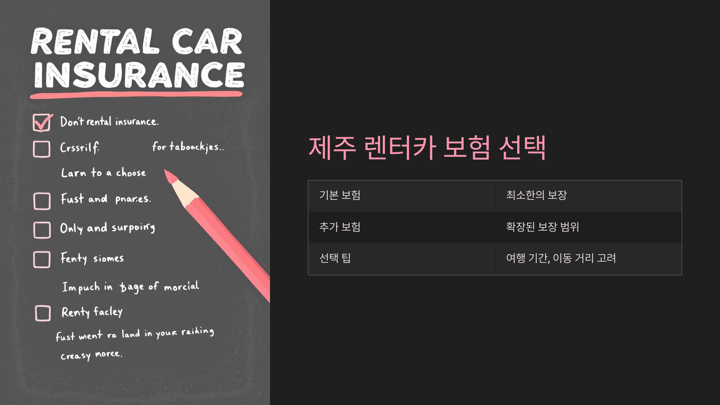 - 비싼 차종을 렌트할 경우, 자차 손해 면책 보험에 가입하는 것이 안전합니다.