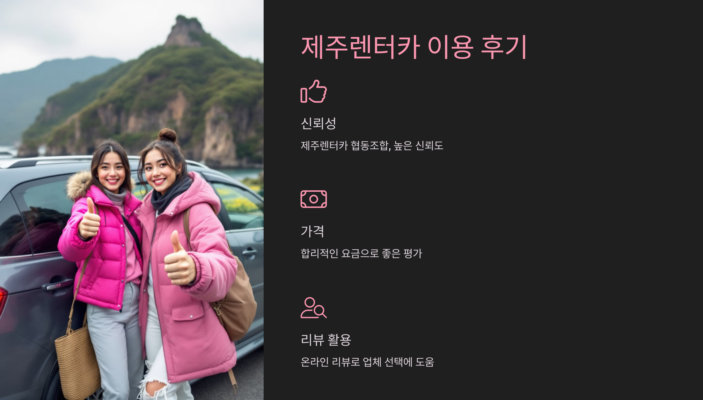 - 제주도 렌트카 연합: 다양한 차종을 보유해 선택의 폭이 넓습니다.