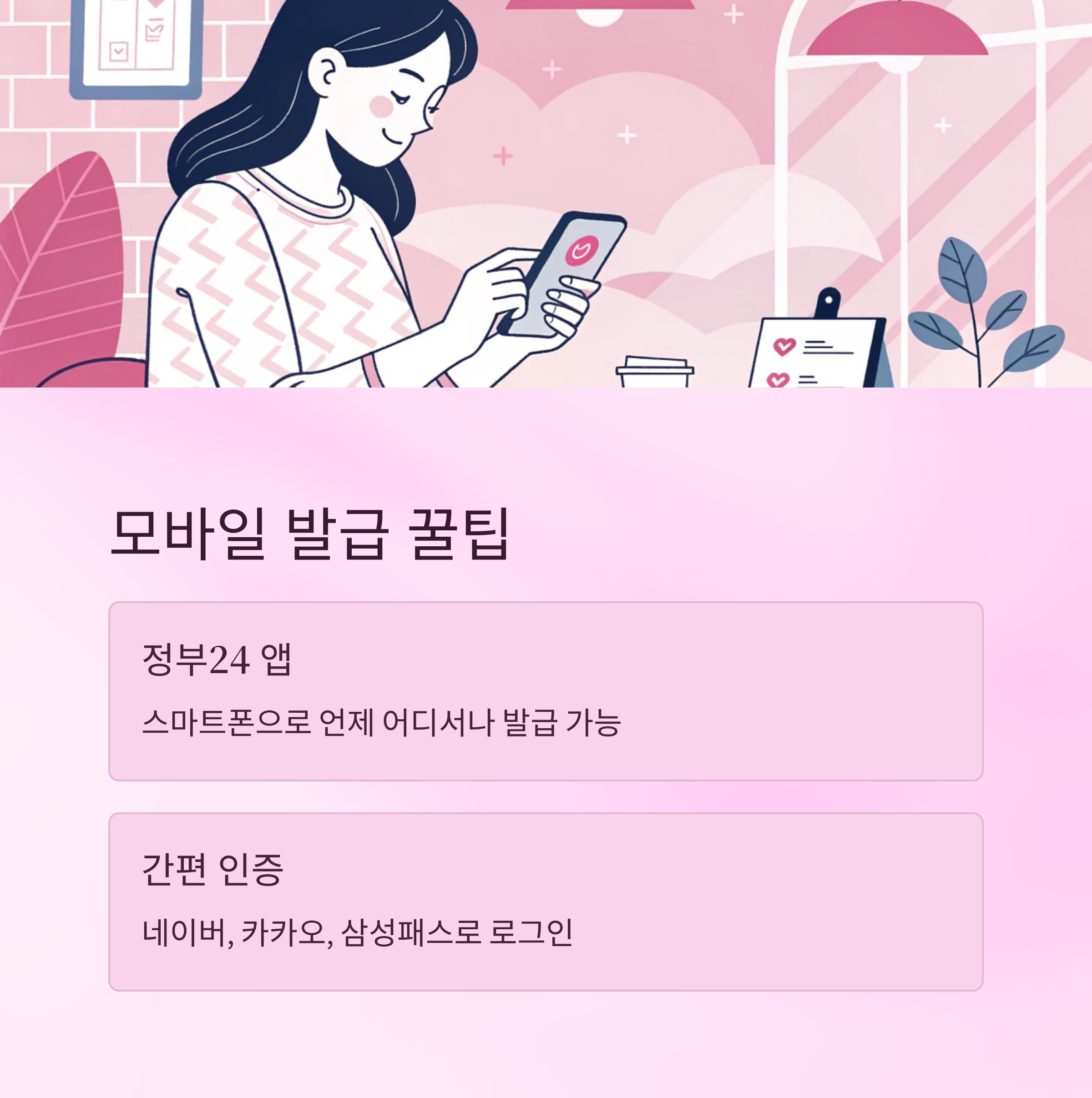 모바일 발급은 평소 바쁜 직장인이나 이동 중에도 서류 준비가 필요한 사람들에게 딱이에요! 😊