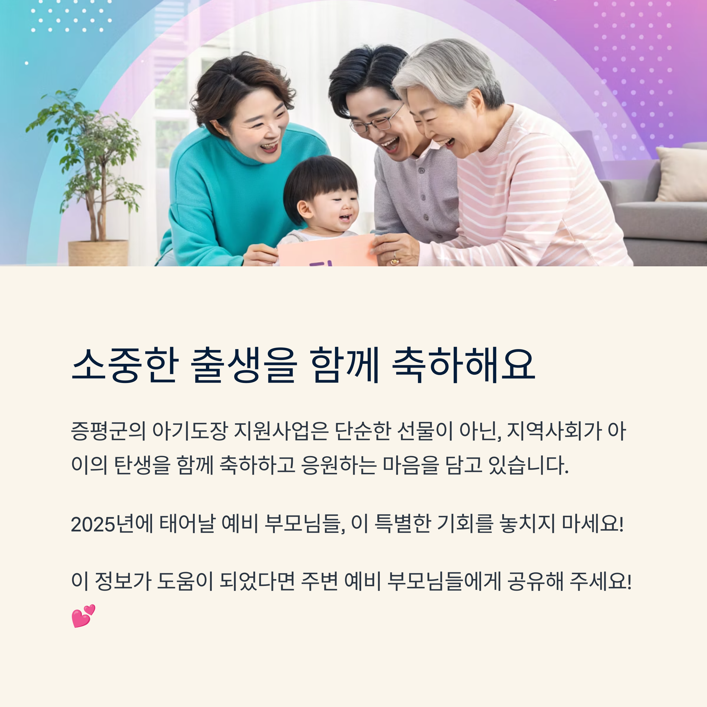 이 정책은 출생 인구를 지역에서 직접 환영하고 지원하겠다는 취지를 담고 있기 때문에, 출생 자체가 증평군이어야만 해요. 따라서 출산 예정 가정이라면 사전에 관련 기준을 꼭 확인하고 준비하는 것이 좋아요.