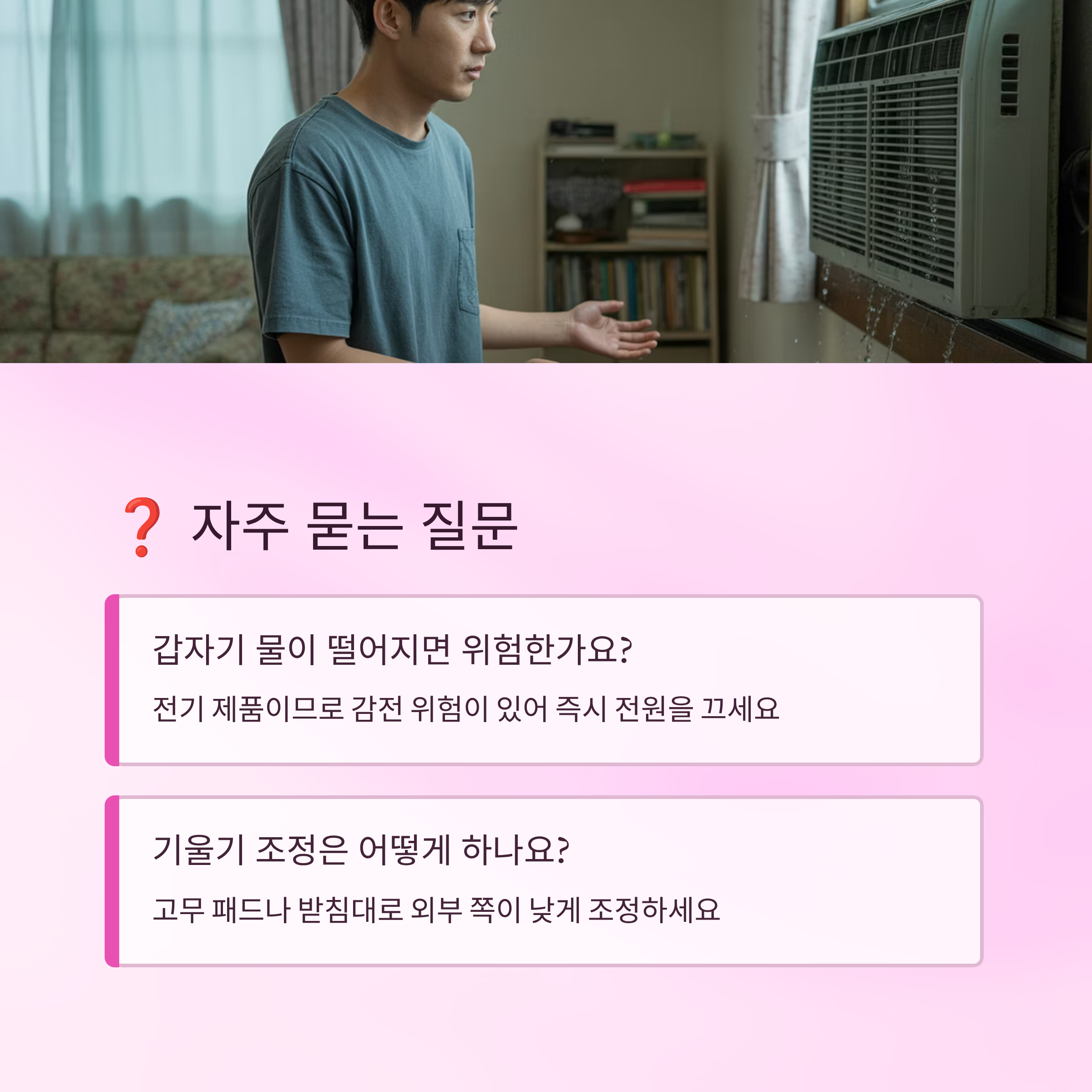Q1. 창문형 에어컨에서 갑자기 물이 뚝뚝 떨어지는데 위험한가요?