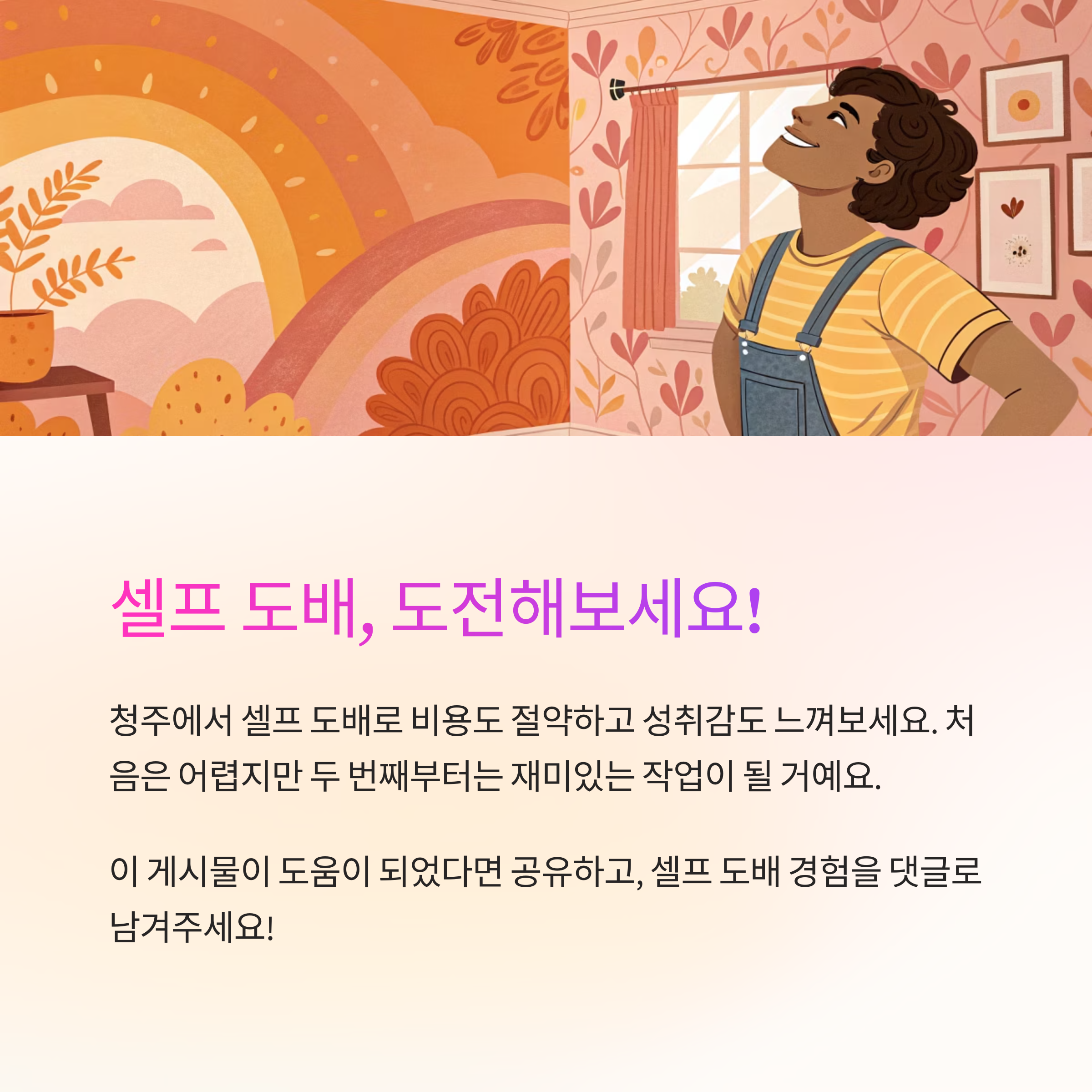 도배는 생각보다 손이 많이 가는 작업이지만, 요령만 알면 누구든지 해볼 수 있어요. 특히 청주는 원룸이나 빌라, 소형 아파트가 많은 도시인 만큼, 셀프 도배를 하기에 적당한 공간이 많답니다. 나의 느낌으로 말하자면, 첫 도전이 어렵지 두 번째부터는 오히려 재미있는 작업이 될 수도 있어요. 😊