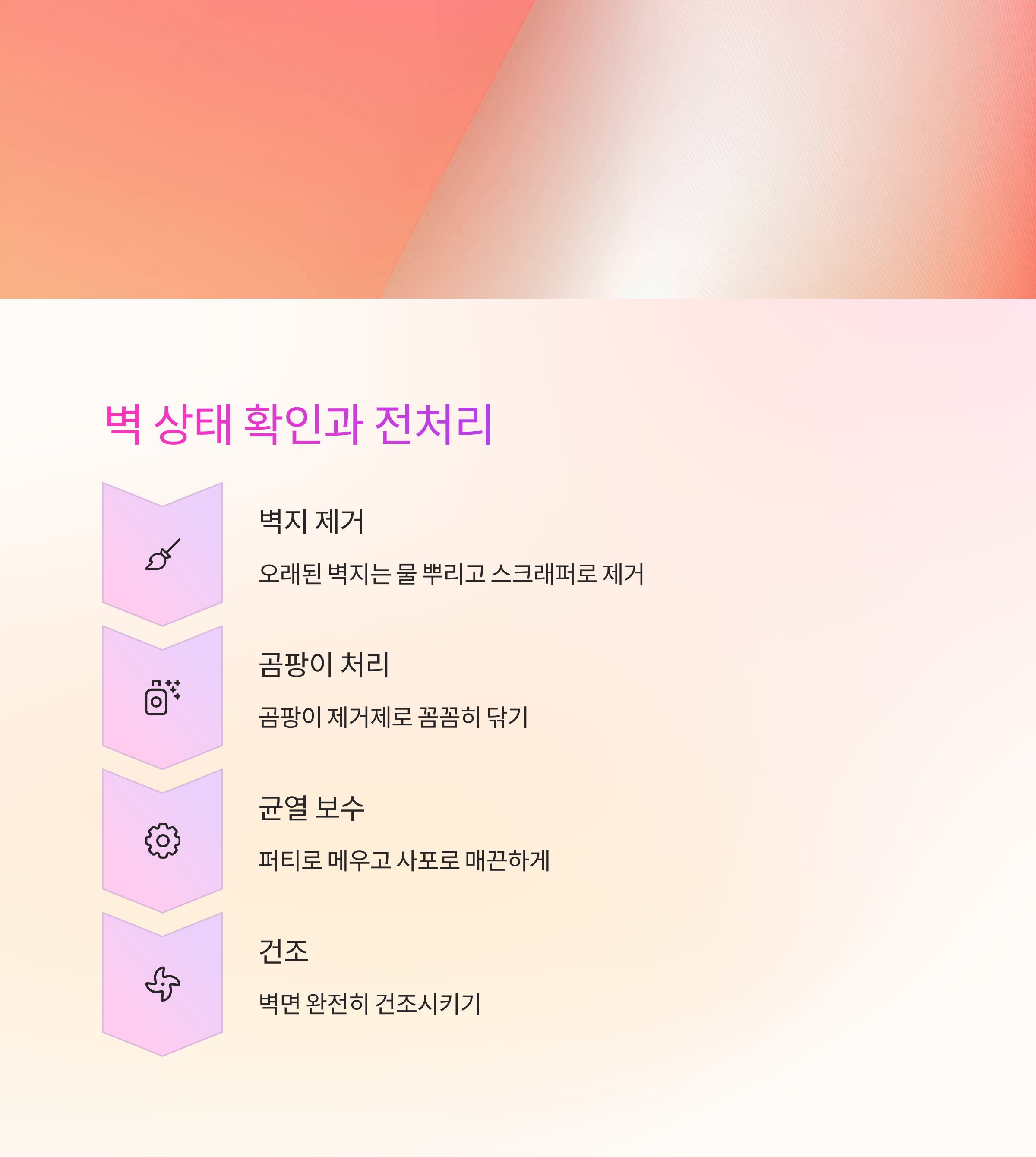 도배를 시작하기 전에 꼭 해야 하는 중요한 작업이 있어요. 바로 벽 상태 점검과 전처리예요. 벽이 오염돼 있거나, 곰팡이가 피었거나, 오래된 벽지가 덧대어 있는 상태라면 그냥 그 위에 도배를 하면 안 돼요. 시간이 지나면 벽지가 들뜨거나 벗겨지기 쉽거든요.
