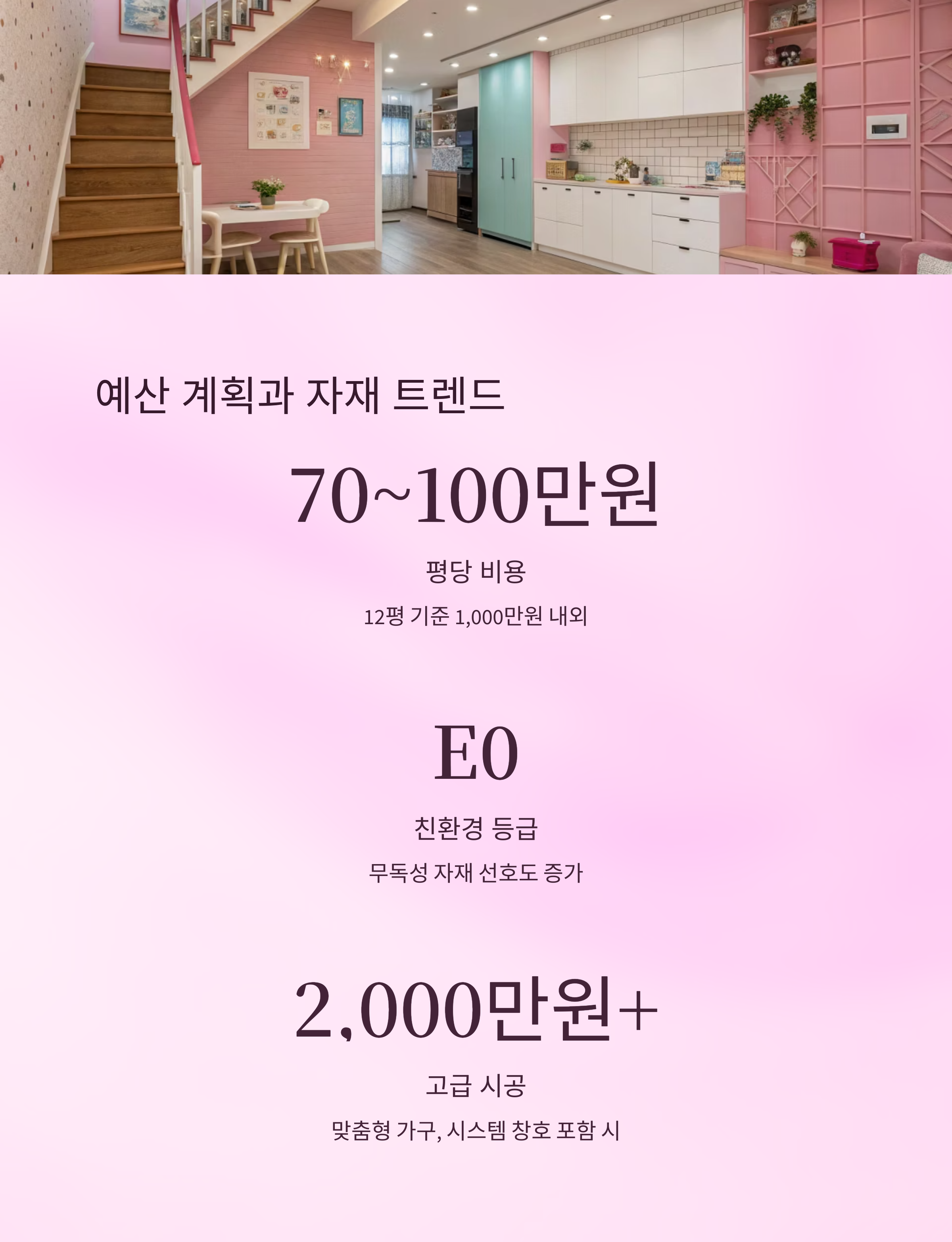 A1. 평균적으로 평당 70~100만 원 선이며, 전체 예산은 1,000만 원에서 2,000만 원 이상까지 다양해요.
