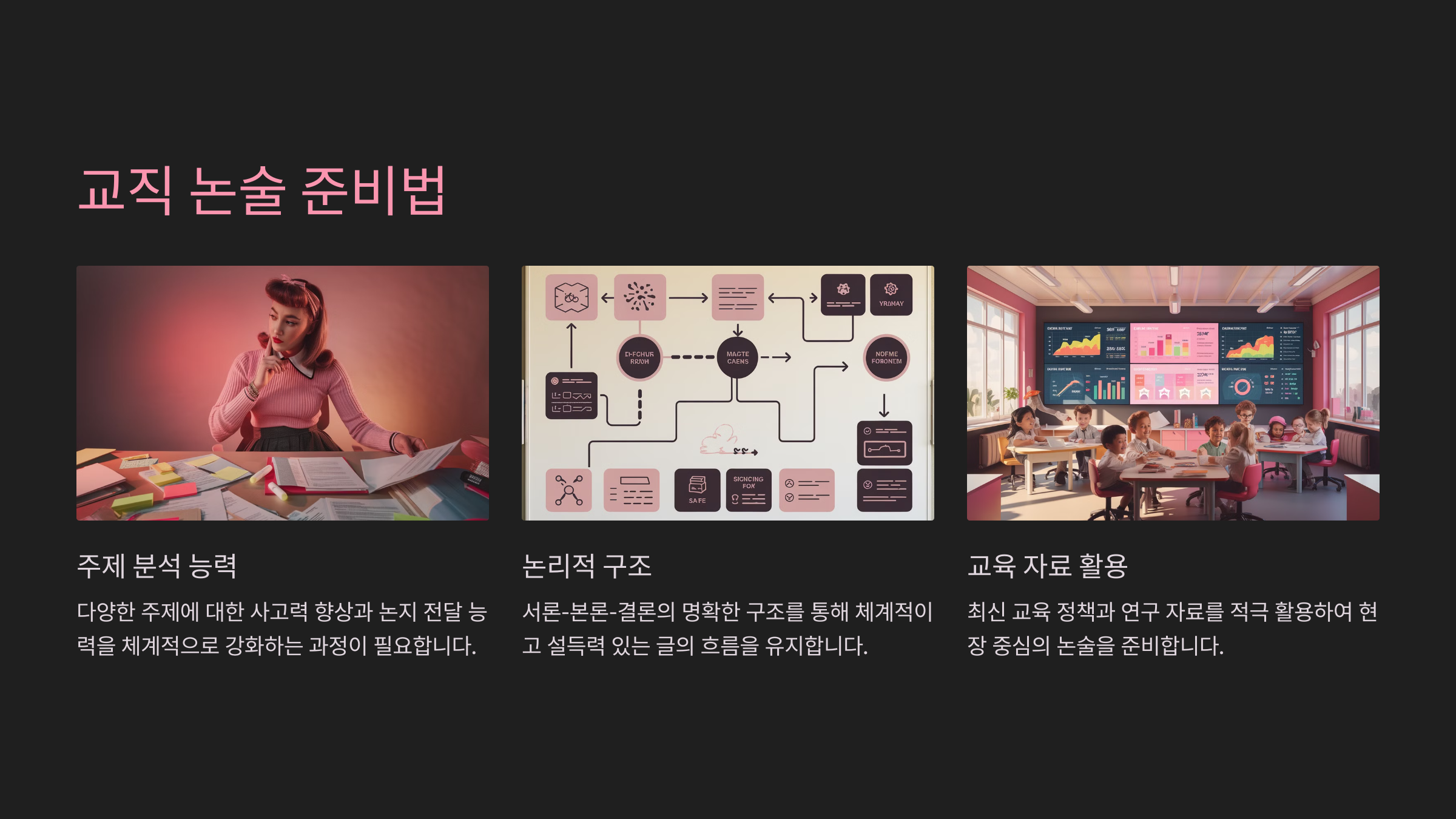- 시사 문제와 교육 현안이 자주 출제되므로, 교육 관련 뉴스를 꾸준히 접하고 자신의 생각을 논리적으로 정리하는 연습이 필요합니다.