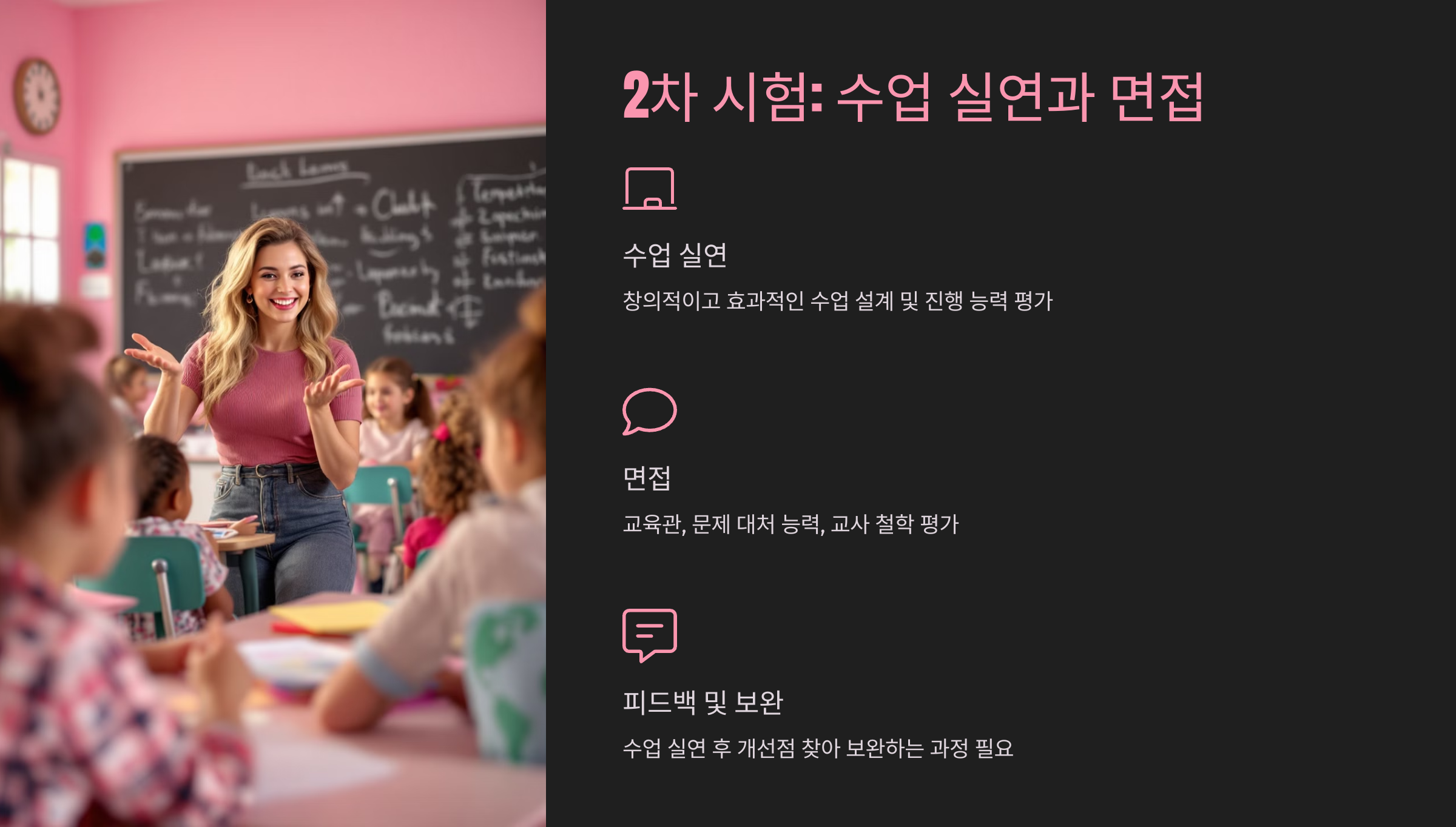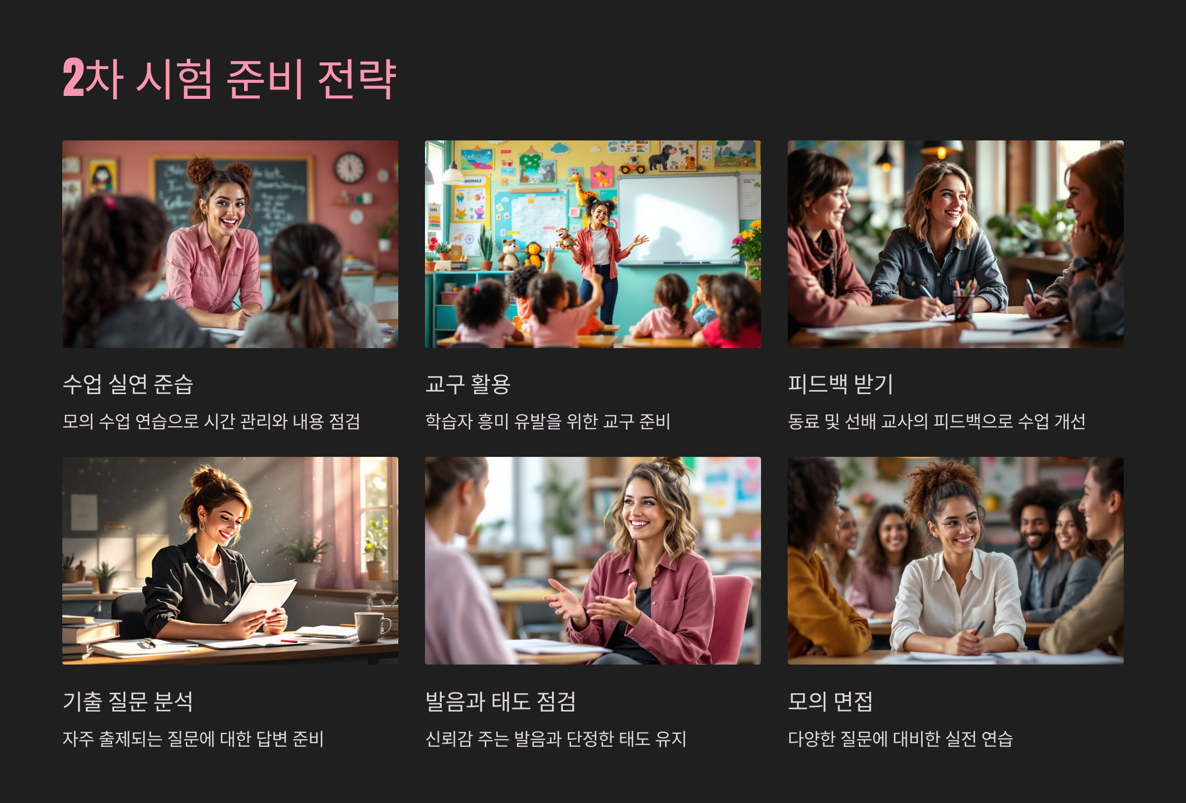 2차 시험은 지원자의 실질적인 교사 역량을 평가하는 과정으로, 실습 중심의 준비가 요구됩니다.
