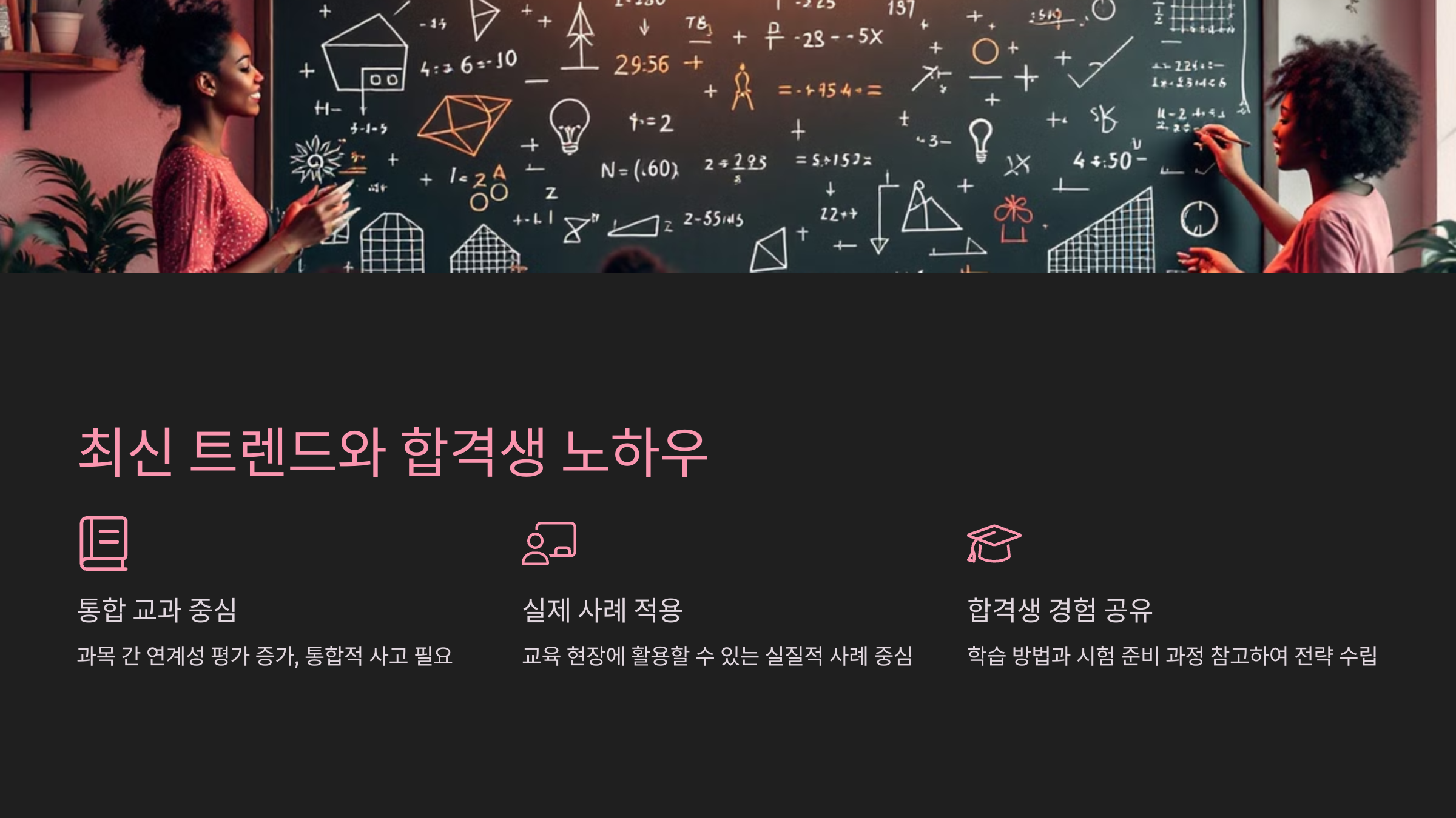 - 통합 교과 중심: 과목 간 연계성을 평가하는 문제가 증가하고 있으므로 통합적 사고를 키우세요. 예를 들어, 국어와 사회를 융합한 수업 설계를 연습하세요.