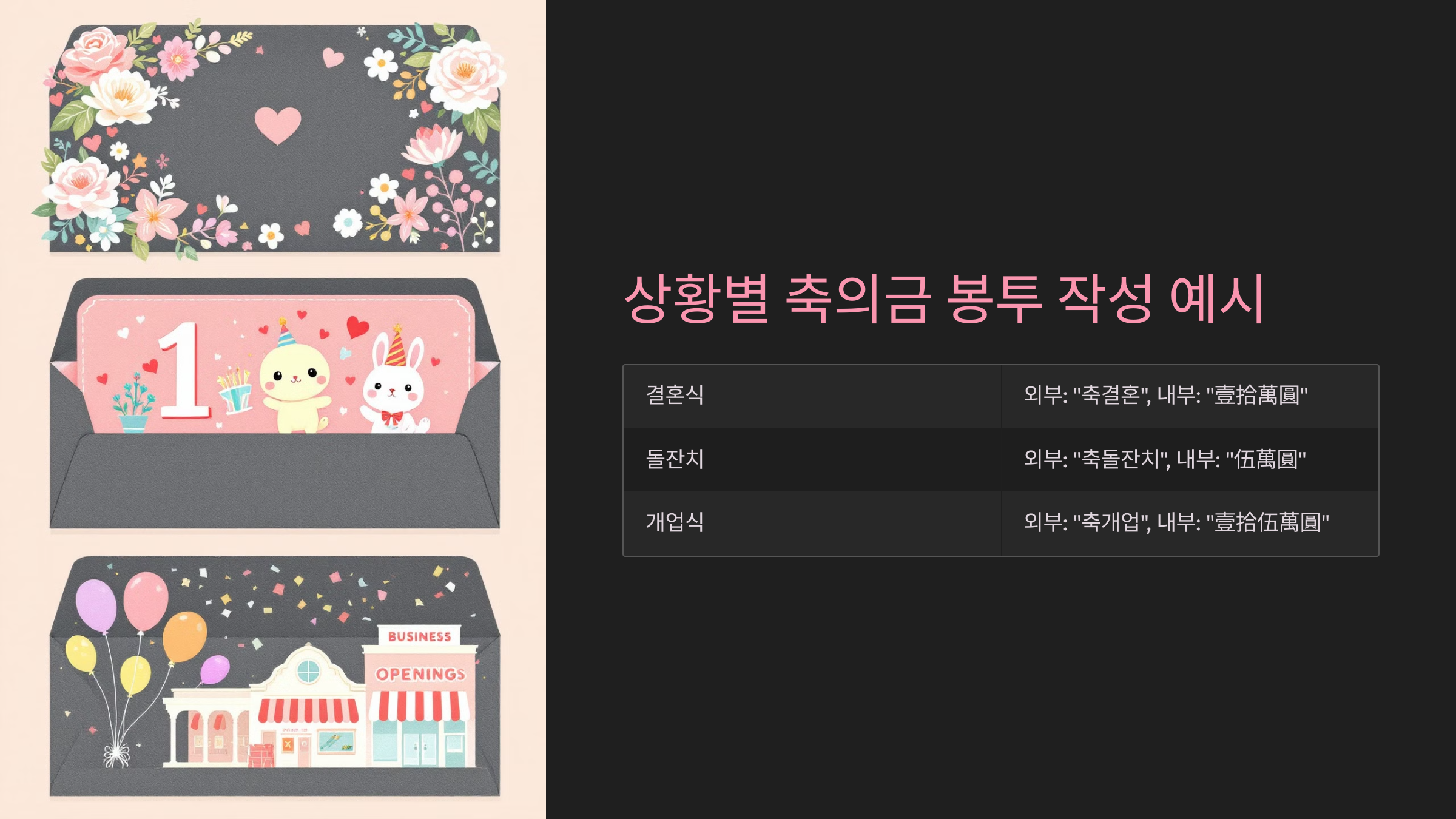 4. 상황별 축의금 봉투 작성 예시