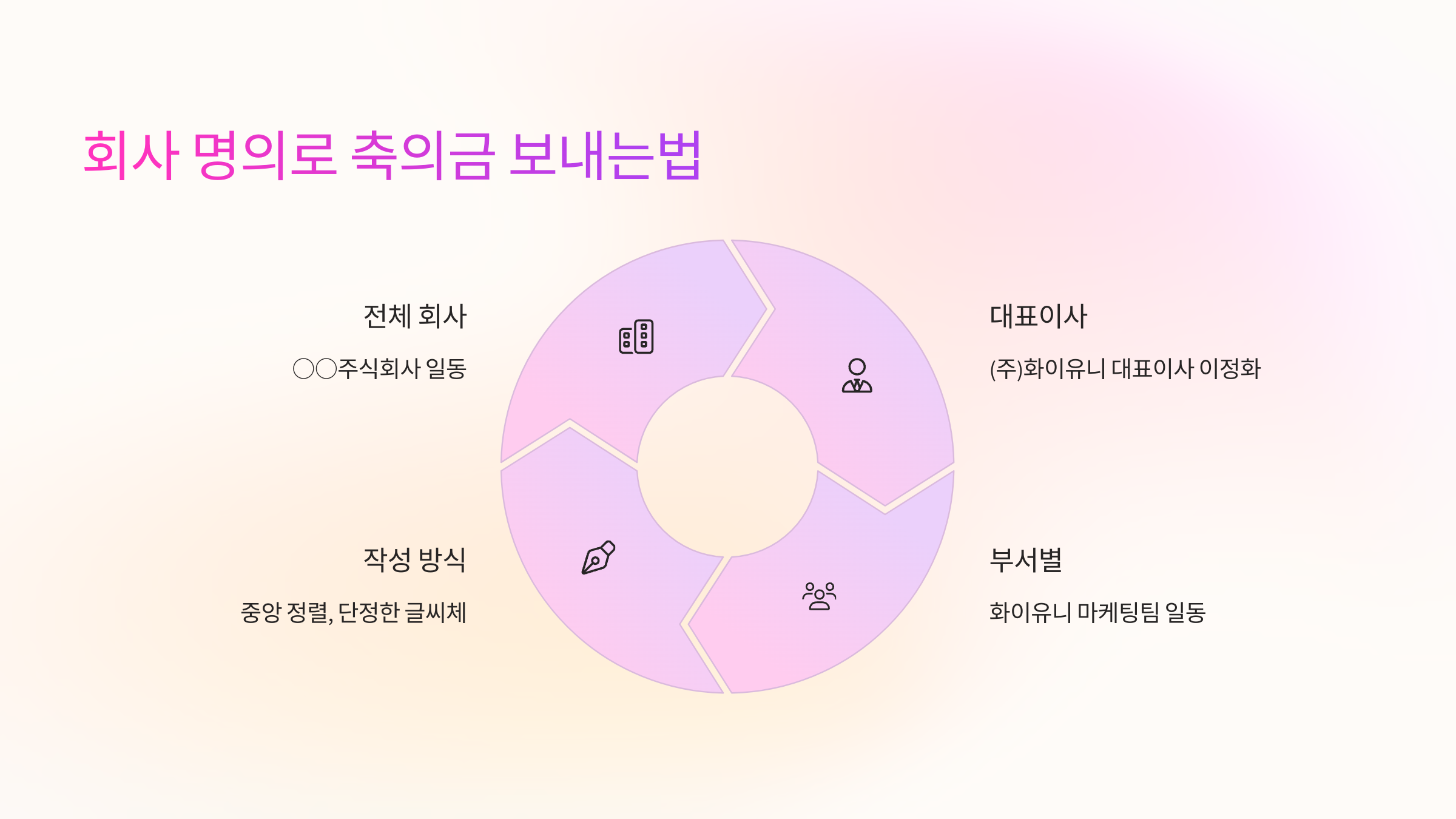 회사에서 대표로 축의금을 보낼 때는 개인 이름 대신 '○○회사 일동' 또는 '○○주식회사 대표이사 ○○○' 식으로 작성해야 해요. 정확하고 공식적인 표현이 중요해요. ✨