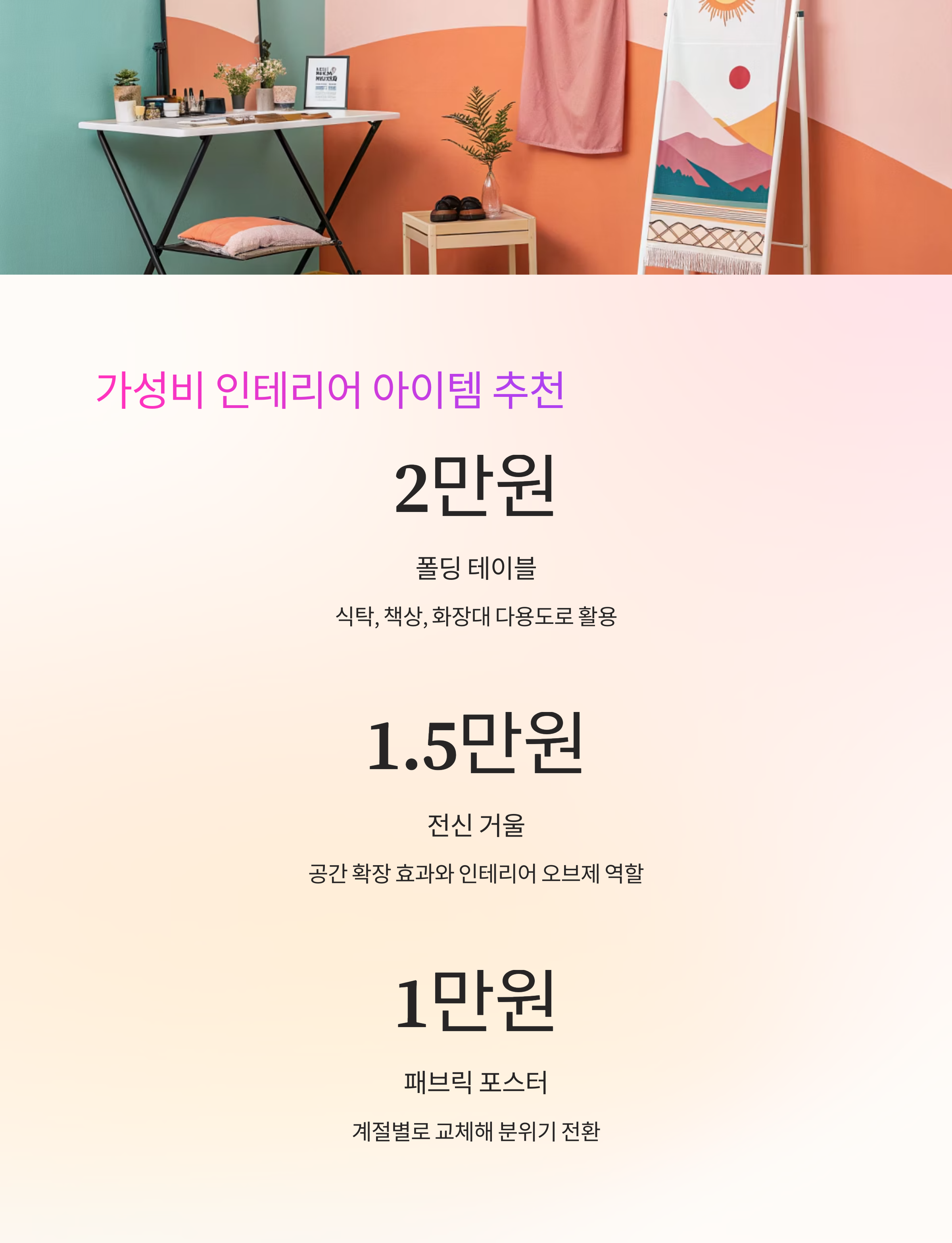 | 가성비 소형 가전 활용 | 실용성 UP |