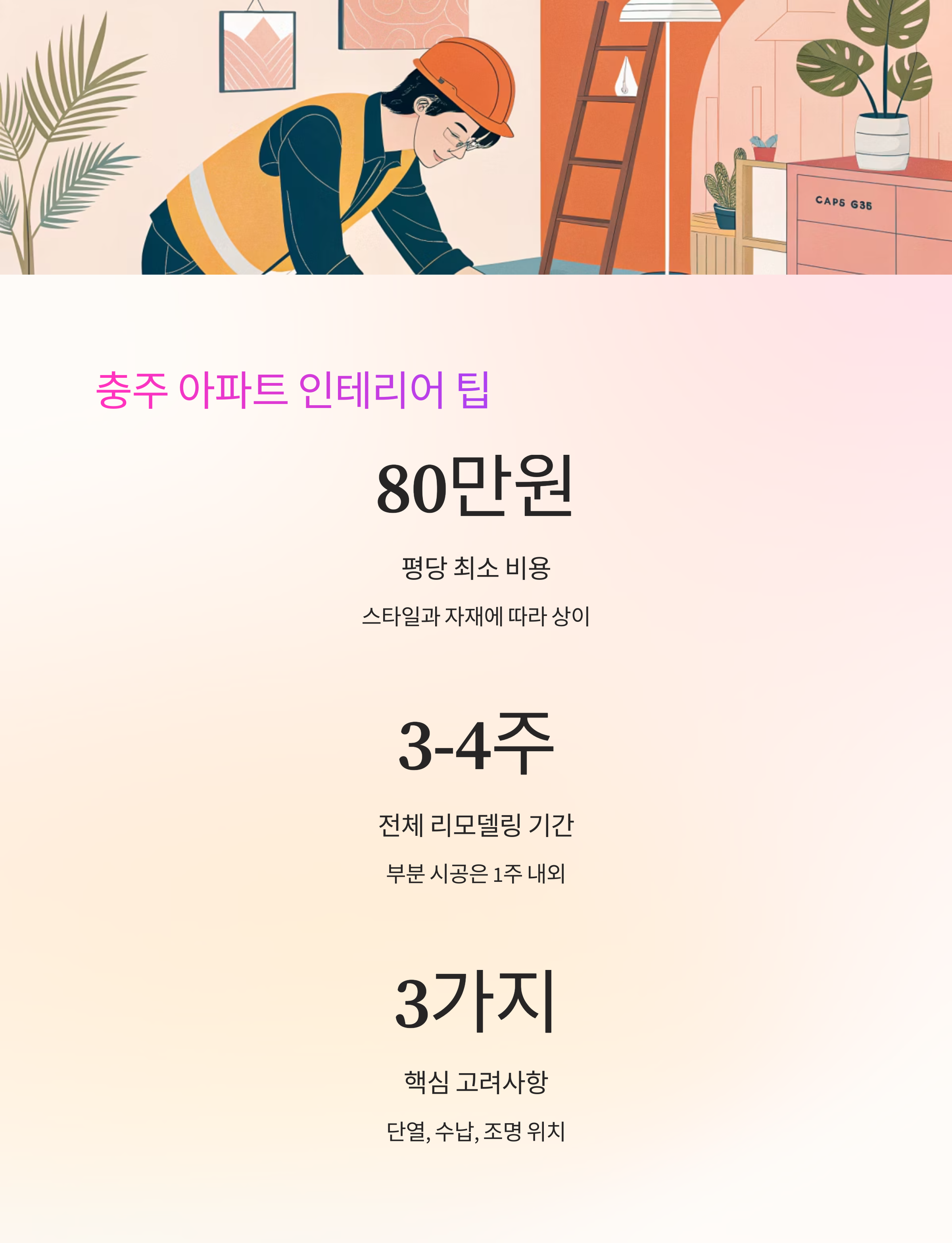 충주는 다양한 연식과 구조의 아파트가 혼재된 도시예요. 그래서 인테리어를 시작하기 전, 구조에 따른 맞춤 계획이 꼭 필요해요. 예를 들어 구축 아파트는 단열과 창호 개선이 우선이고, 신축은 수납 및 감성 디자인이 중심이 되죠.