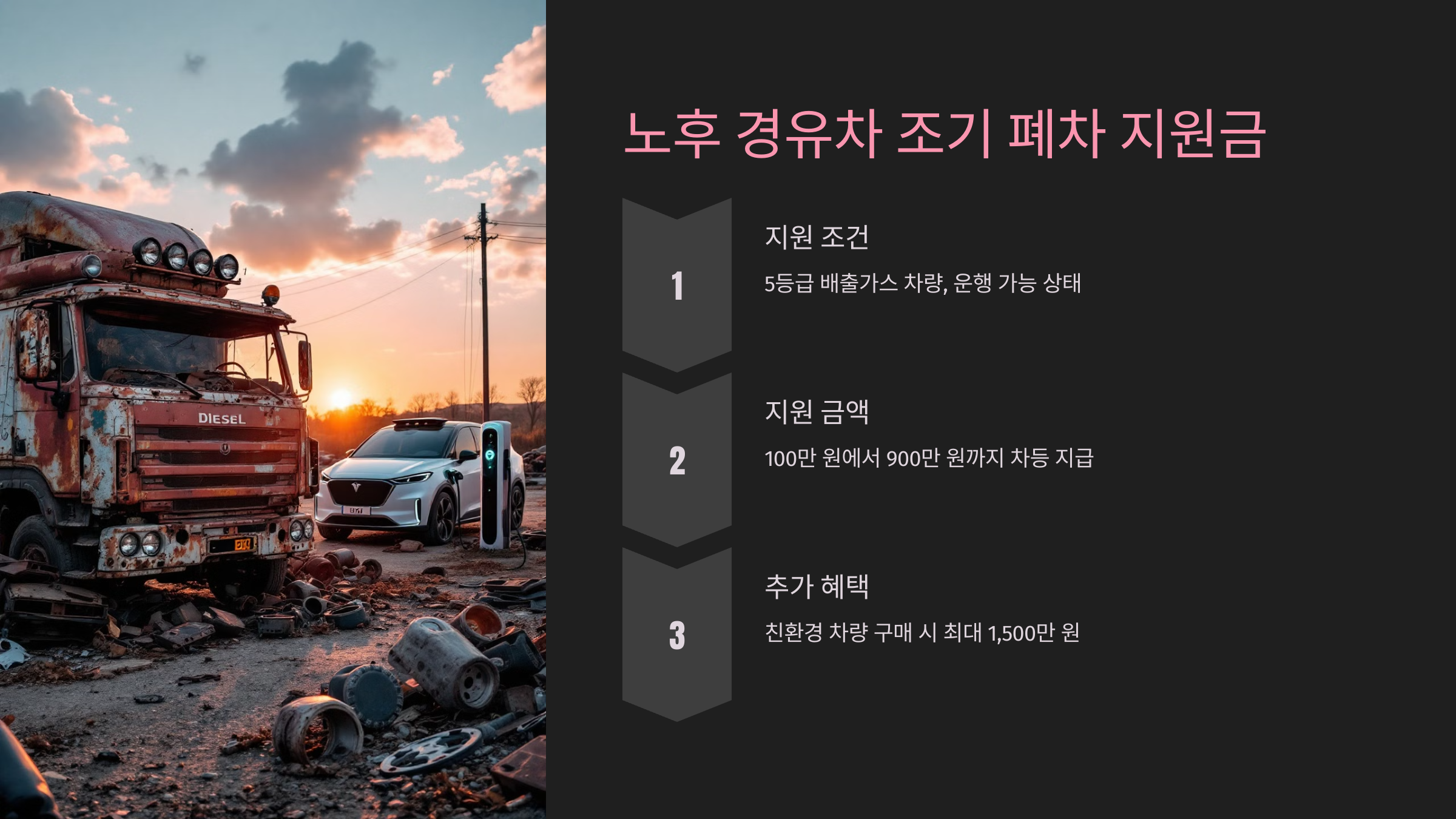 노후 경유차는 환경 오염의 주요 원인으로, 이를 폐차할 경우 특별한 혜택을 제공합니다.