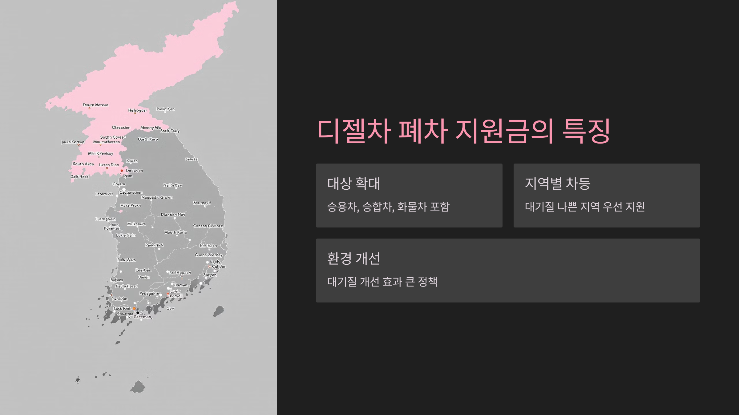 - 대상 차량의 확대: 기존 승용차 외에도 디젤 승합차, 화물차 등이 지원 대상에 포함됩니다. 특히, 대형 디젤 차량은 환경에 미치는 영향이 커 우선적으로 지원됩니다.