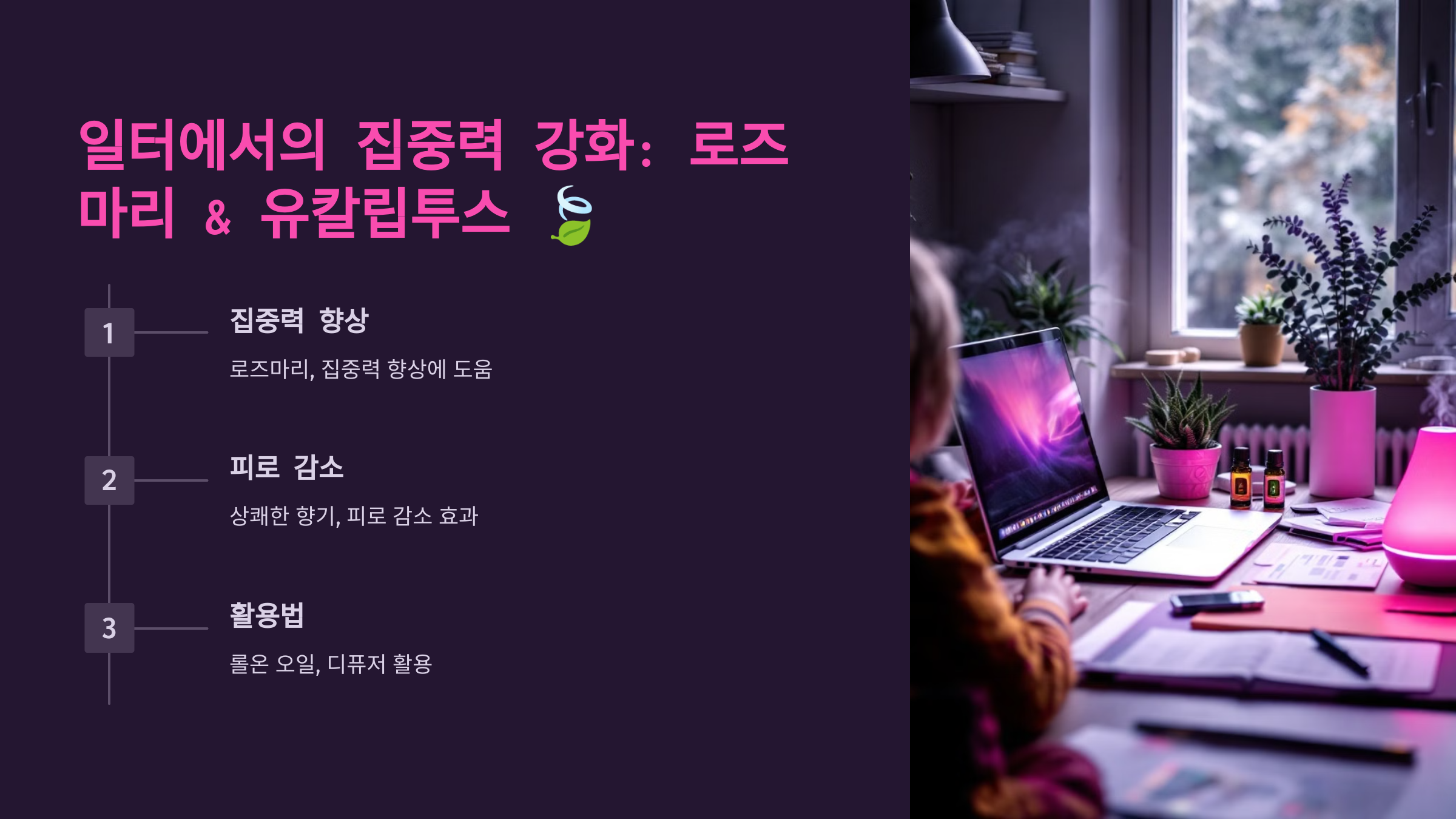2. 일터에서의 집중력 강화: 로즈마리 & 유칼립투스 🍃