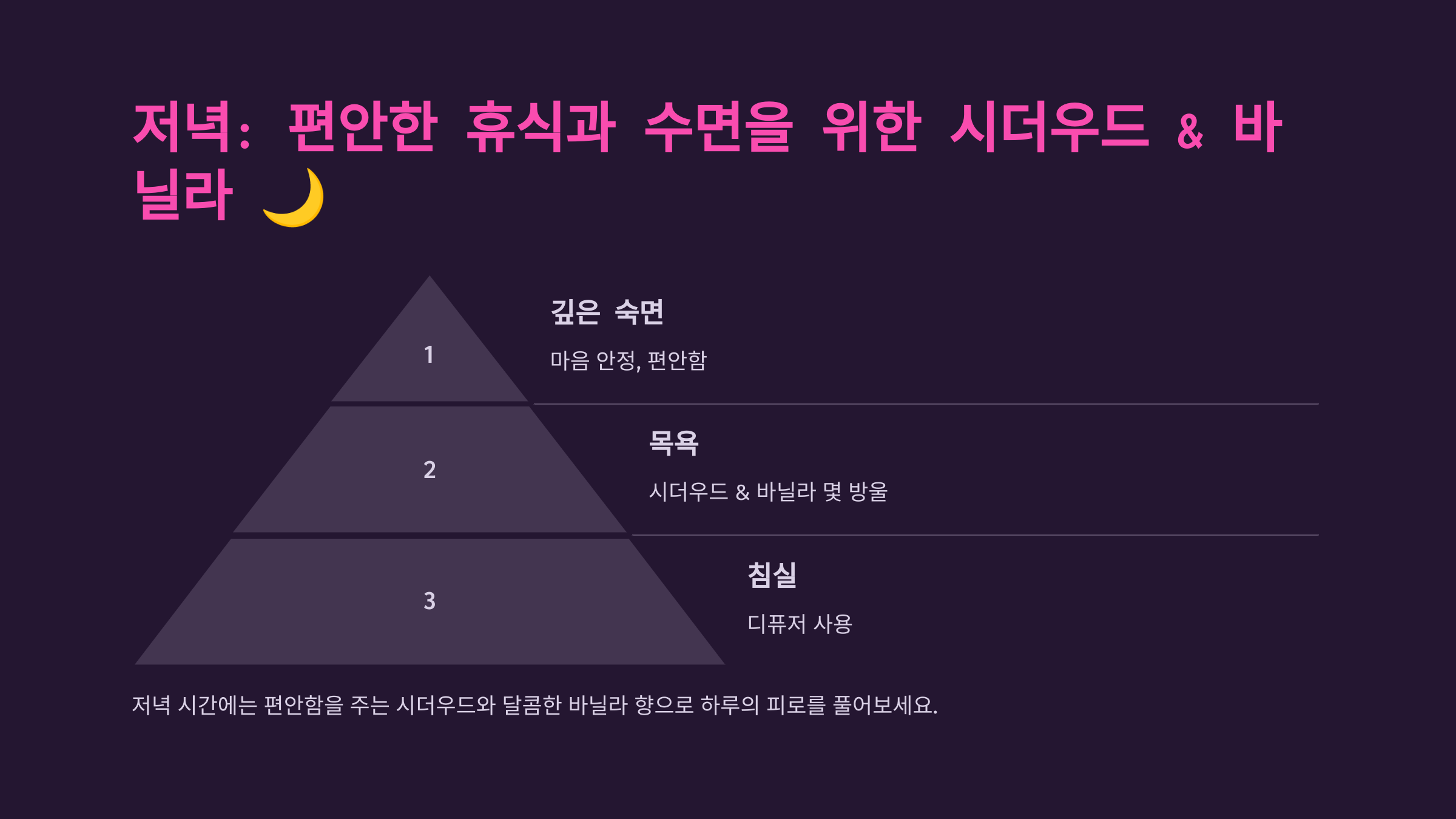 4. 저녁: 편안한 휴식과 수면을 위한 시더우드 & 바닐라 🌙