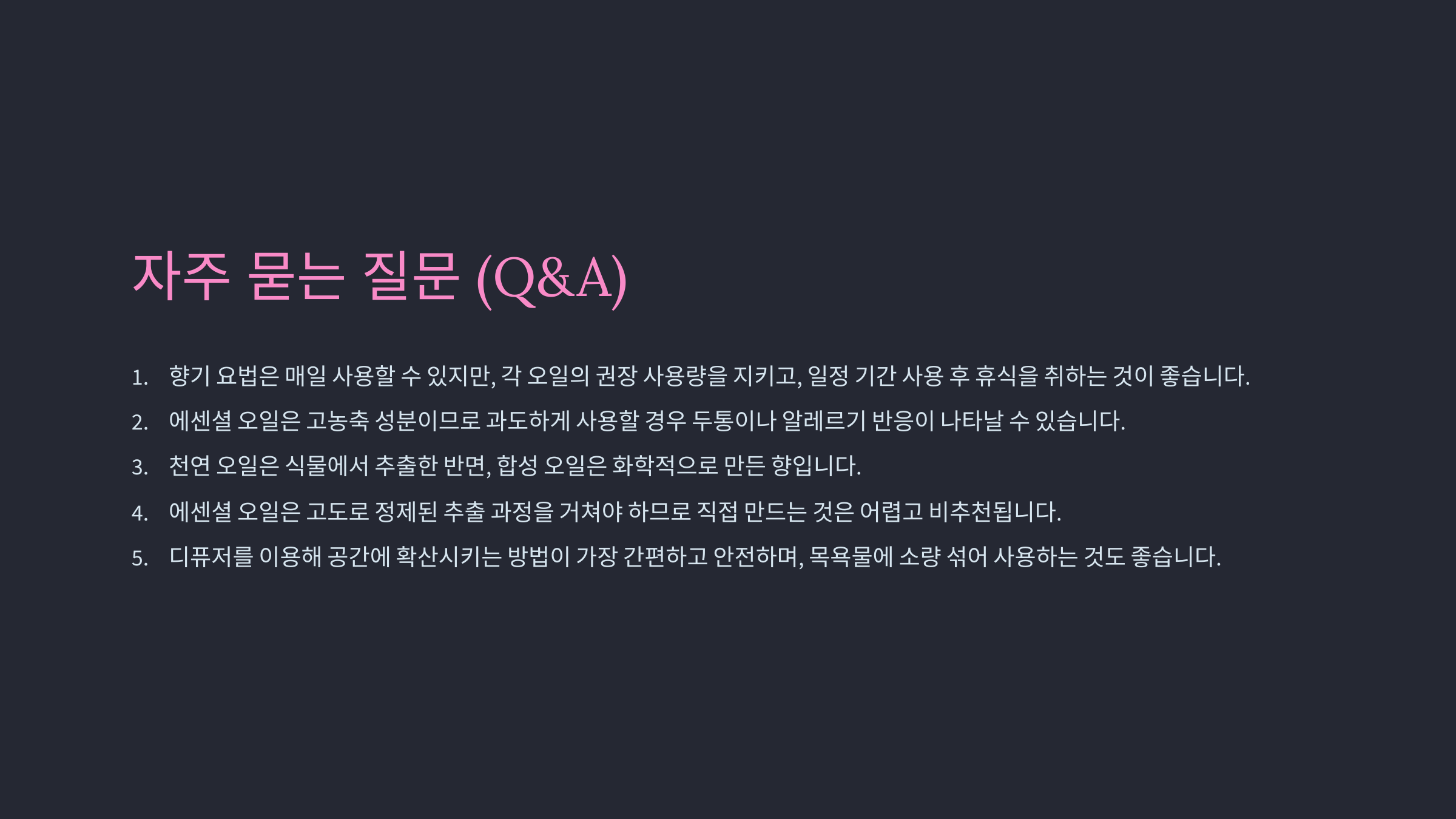 Q5. 향기 오일을 사용할 때 가장 추천되는 방법은 무엇인가요?