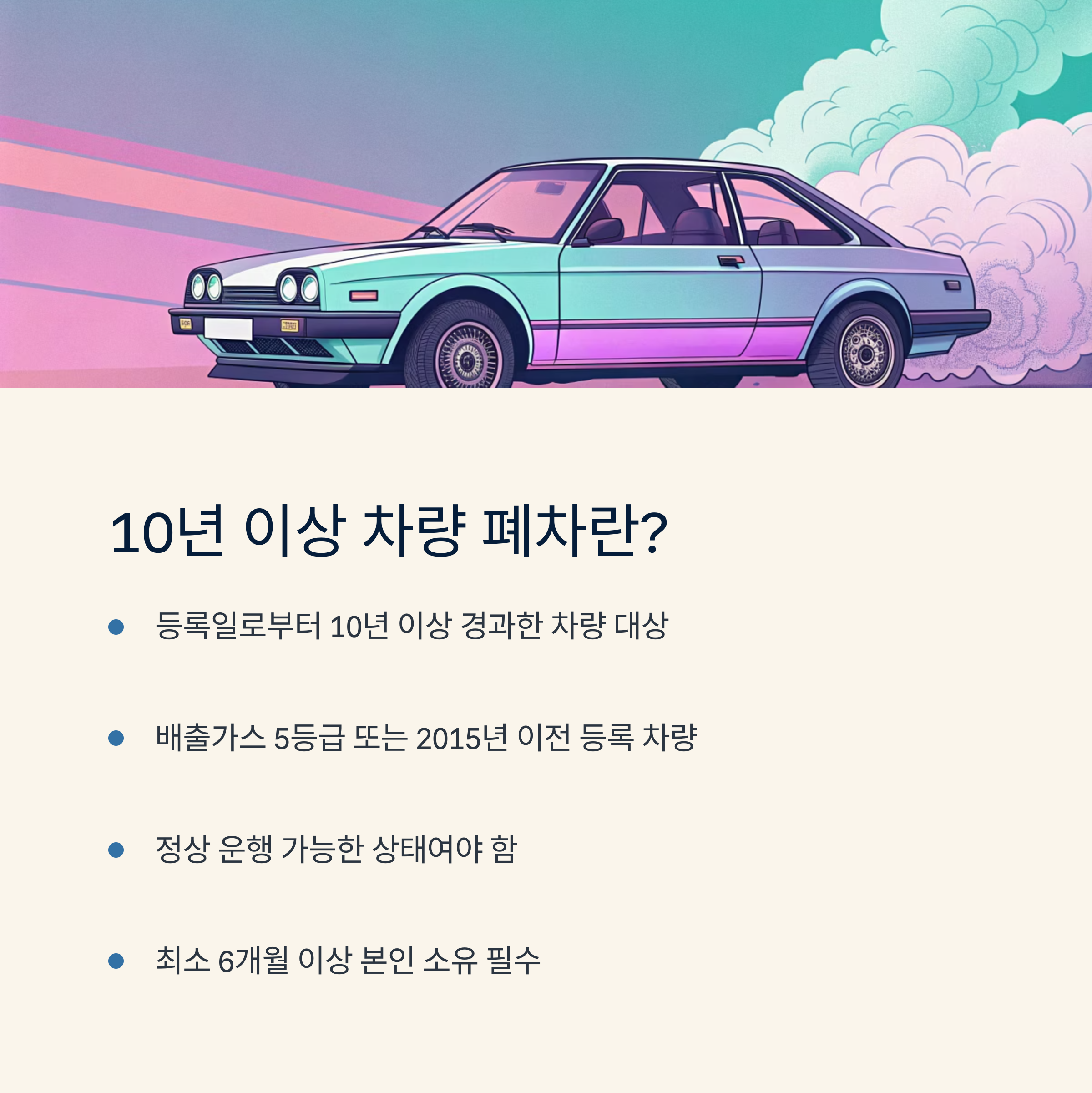 대상 차량은 일반적으로 등록일로부터 10년 이상 경과한 승용차, 화물차, 승합차 등이 포함돼요. 단순히 연식만으로 판단하지 않고, 주행거리, 정기검사 결과, 배출가스 등급 등도 함께 고려된답니다. 특히 5등급 노후차는 조기폐차 대상에 해당될 확률이 높아요.