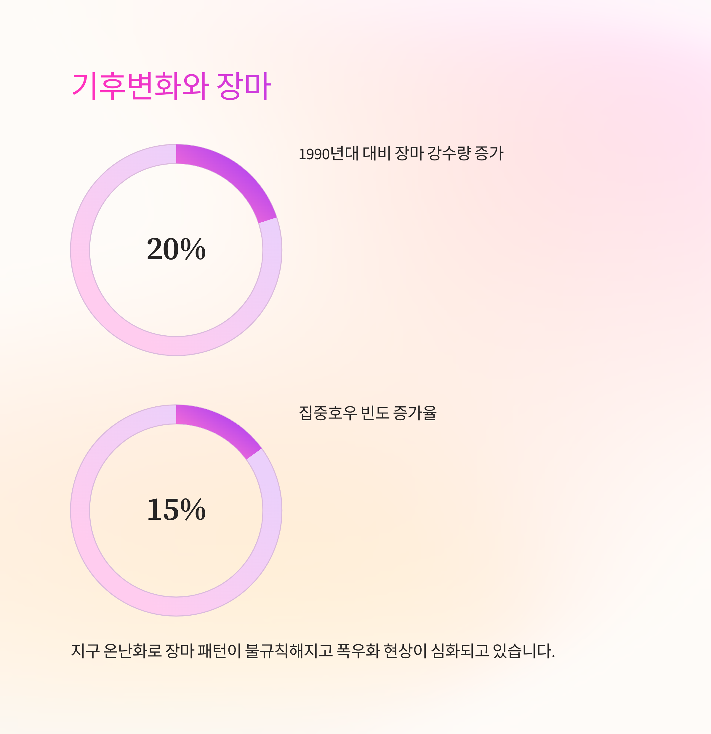 최근 몇 년 사이 장마의 패턴은 눈에 띄게 달라지고 있어요. 예전처럼 일정한 시작과 끝을 가진 장마가 아니라, '짧고 강하게' 혹은 '길고 약하게' 내리는 식으로 극단적인 형태를 보이고 있어요. 이런 변화는 전 세계적인 기후 변화, 특히 지구 온난화와 매우 밀접한 관련이 있답니다.