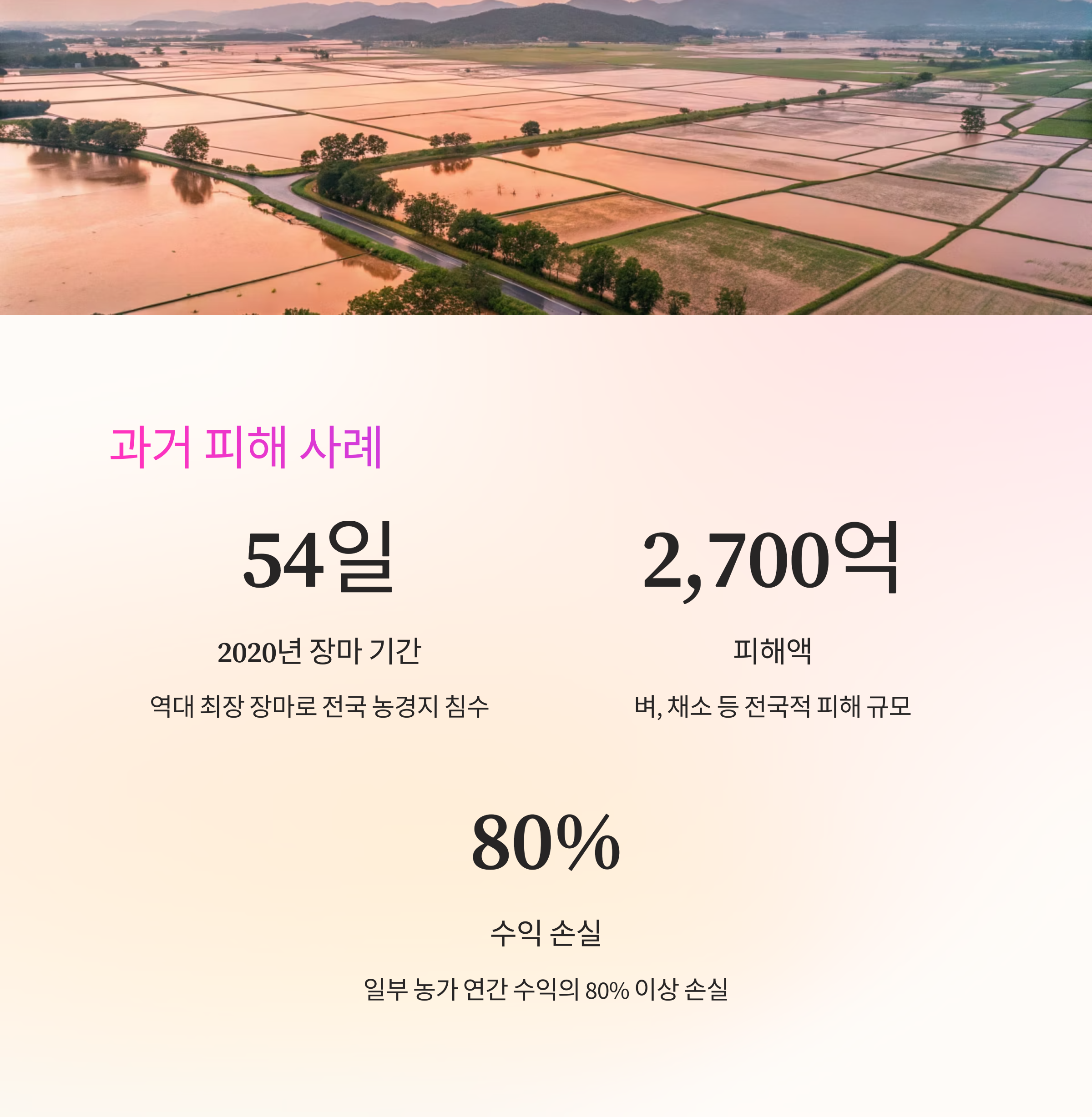| 2020년 | 전국 | 벼, 채소 | 2,700억 원 |