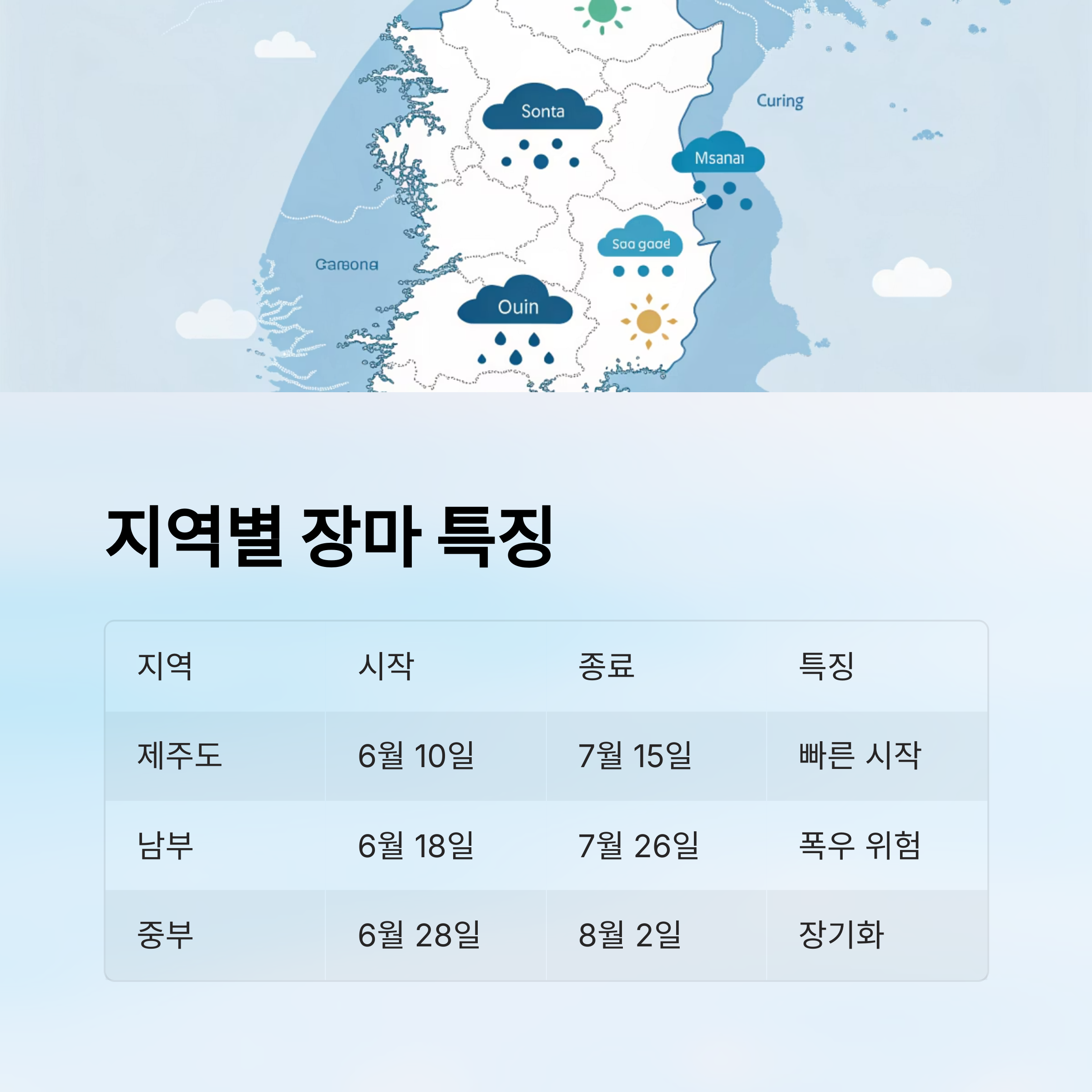 이처럼 지역마다 장마 시기의 차이가 크기 때문에, 전국적으로 동일한 대응책을 세우는 것보다 각 지역 상황에 맞춘 유연한 준비가 필요해요. 특히 여행이나 외부 일정이 많은 분들은 각 지역의 장마 일정을 꼭 체크해보세요! 🧳