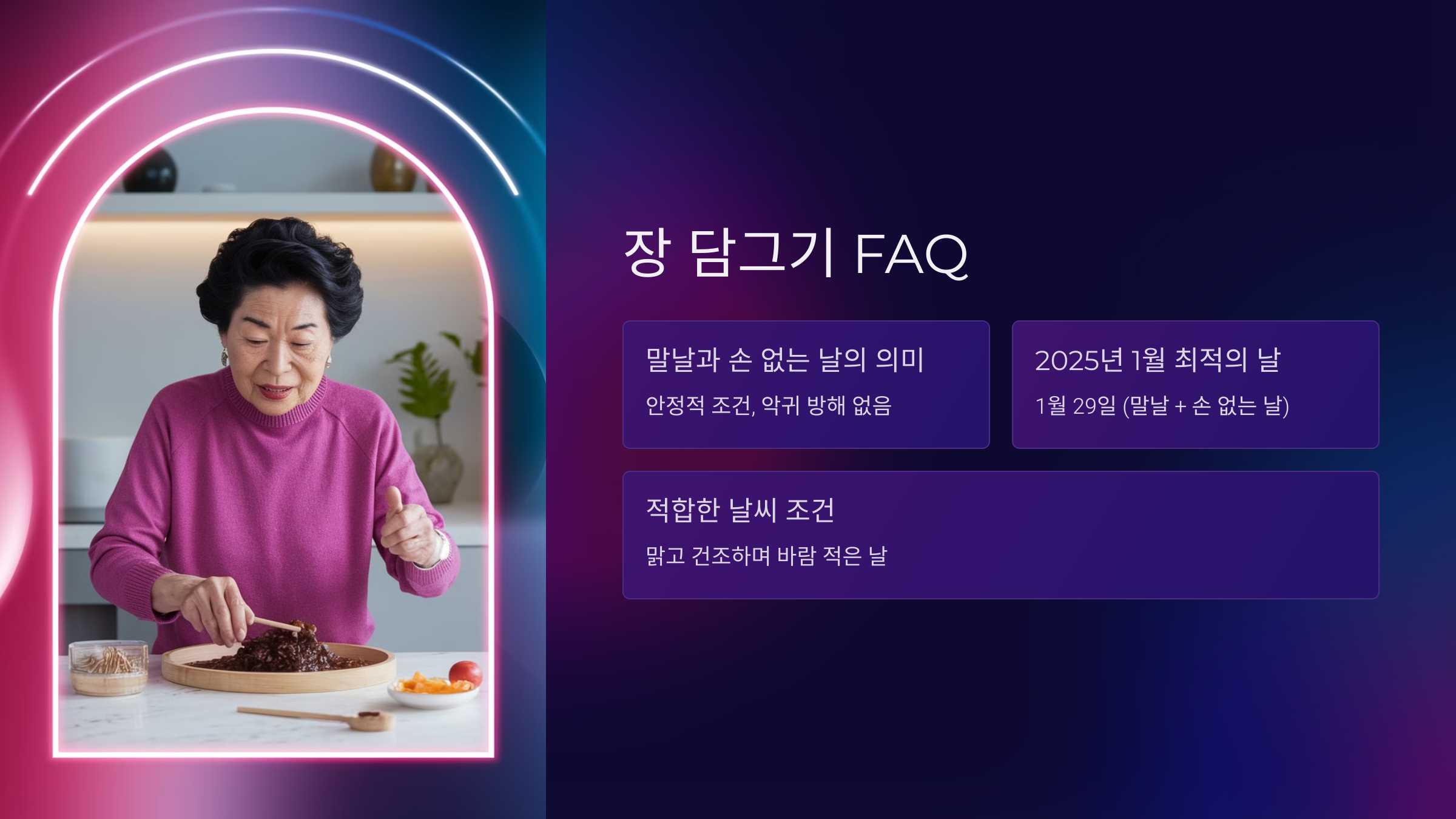 장은 우리 식문화의 중심에 있는 음식이기 때문에, 담그는 날의 선택은 우리 삶의 건강과 직결된다고 볼 수 있어요. 따라서 날짜 선정이 그만큼 중요하답니다.