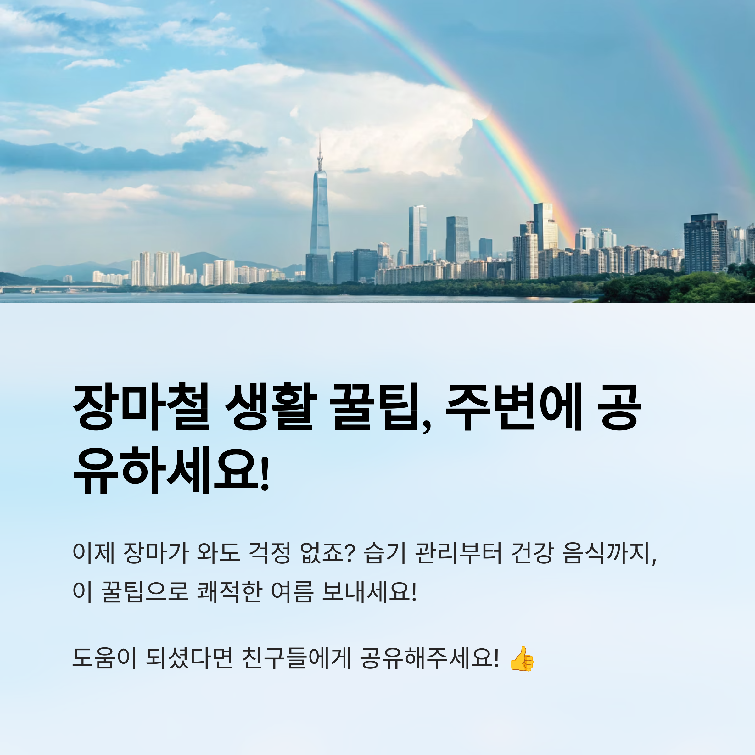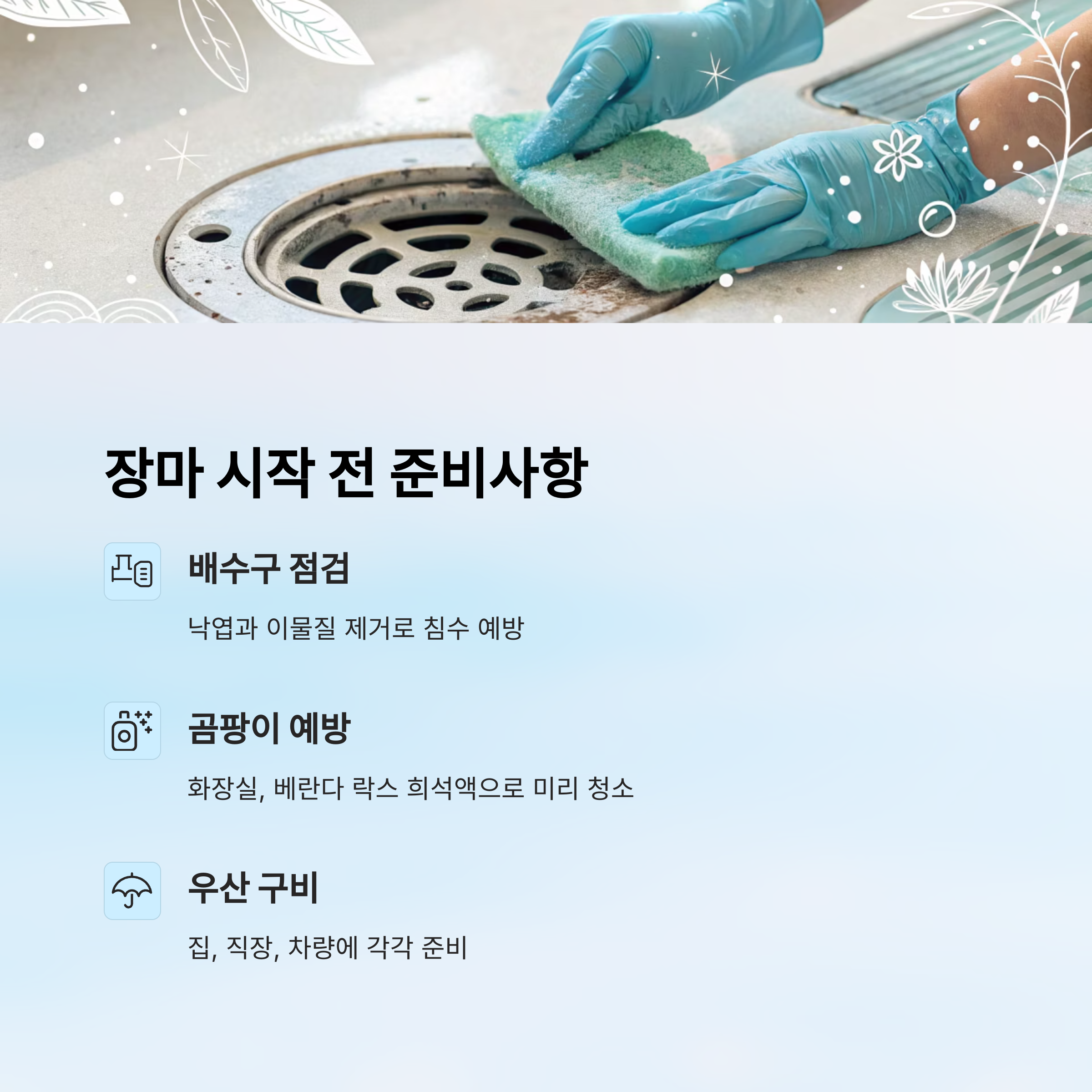 이렇게 작은 준비들이 장마철 불편을 크게 줄여줘요. 집과 몸, 마음까지도 뽀송하게 지킬 수 있는 똑똑한 시작이랍니다. 🌂
