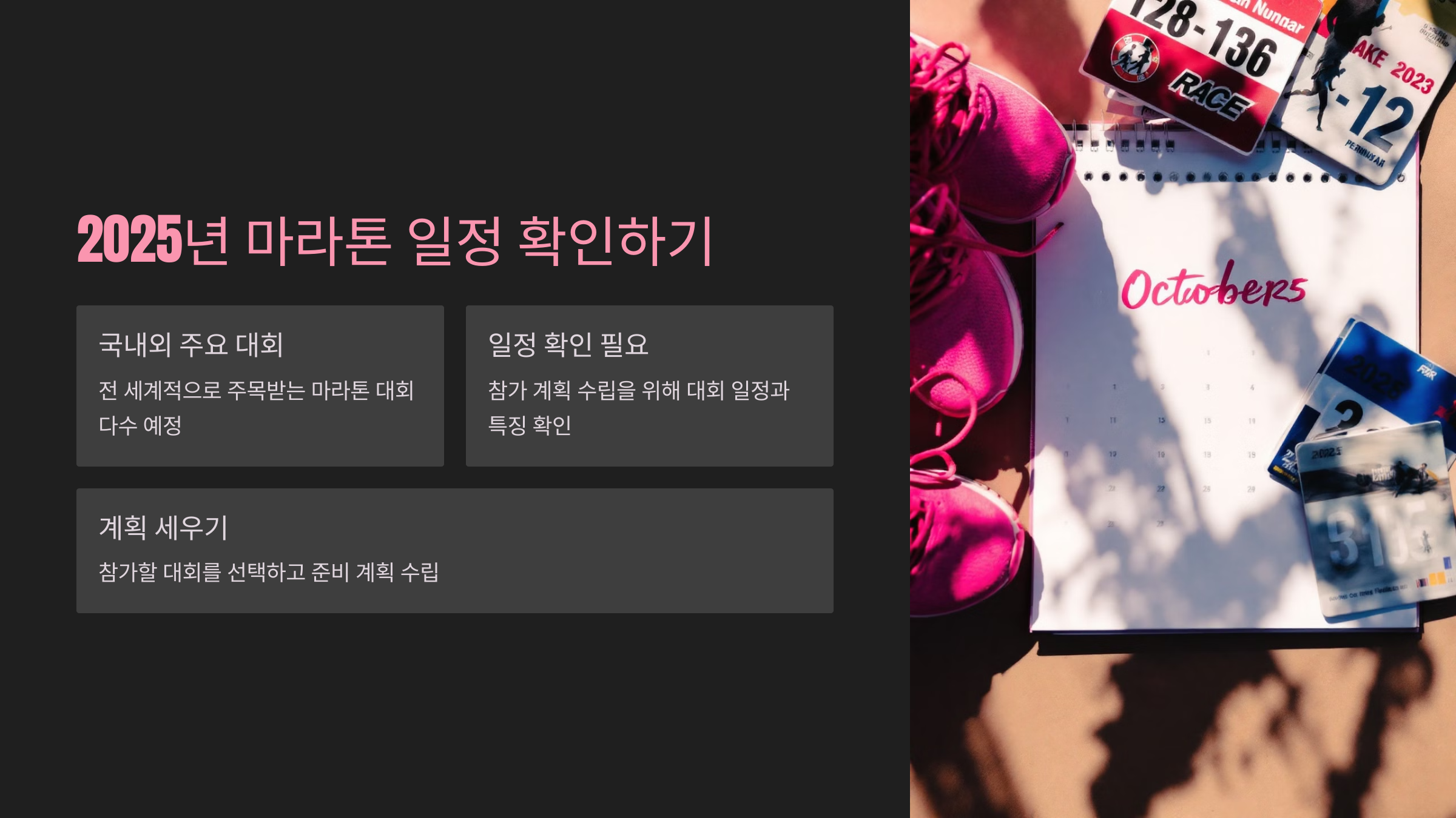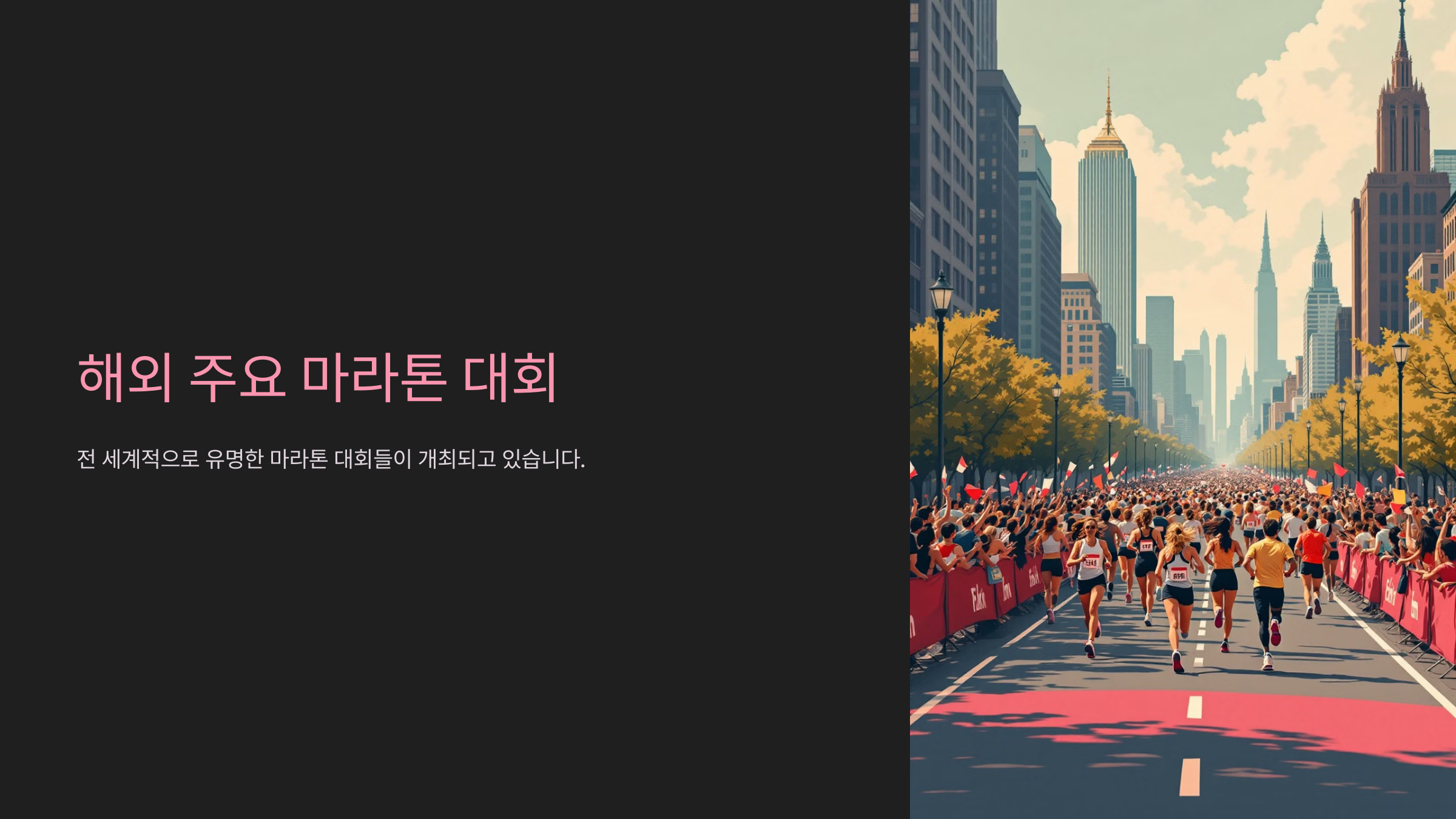 2025년에는 전 세계적으로 주목받는 마라톤 대회가 다수 예정되어 있습니다. 국내외 주요 대회의 일정과 특징을 확인하고, 참가 계획을 세워보세요.
