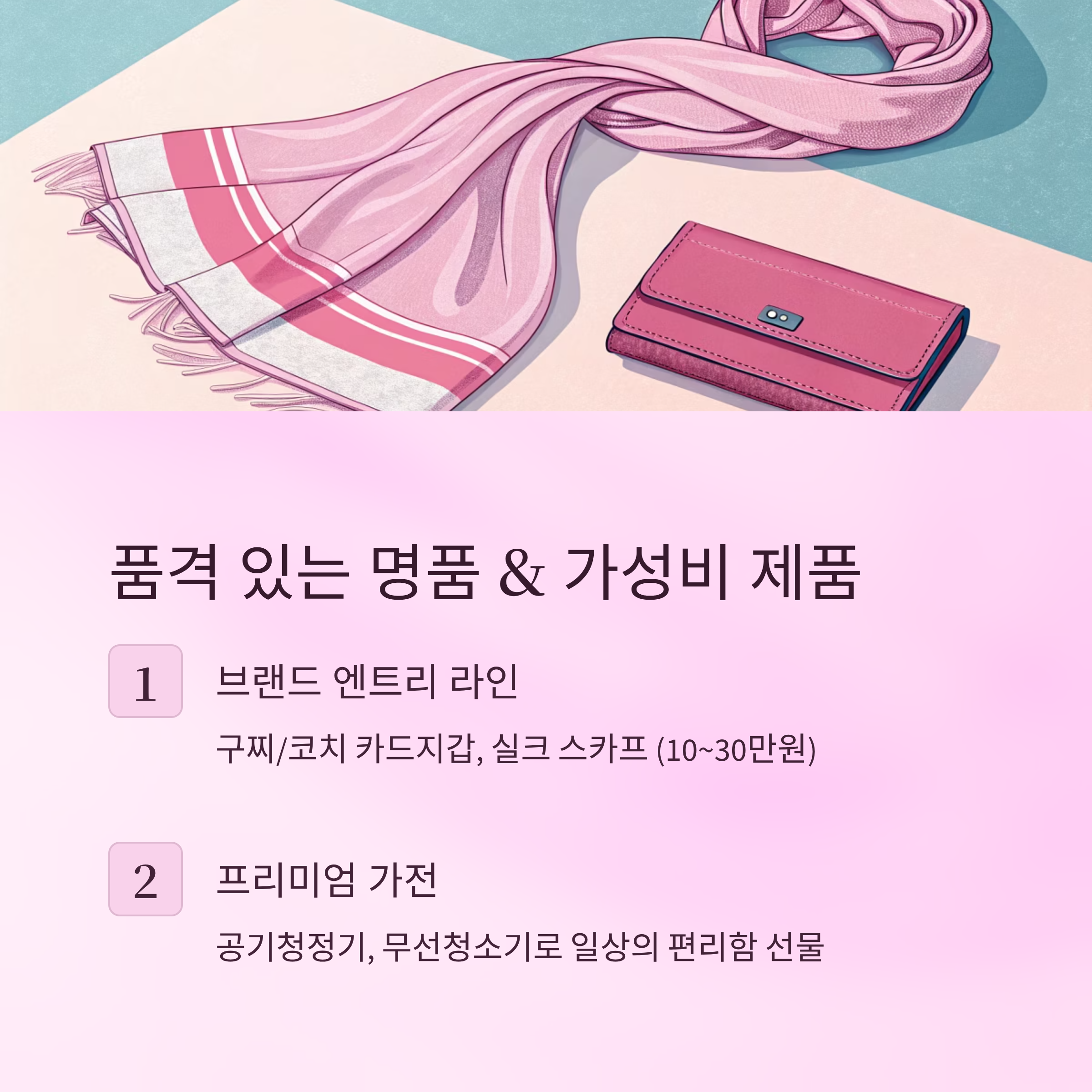 | 실크 스카프 | 패션 잡화 | 10~20만 원 | 우아함과 활용성 |